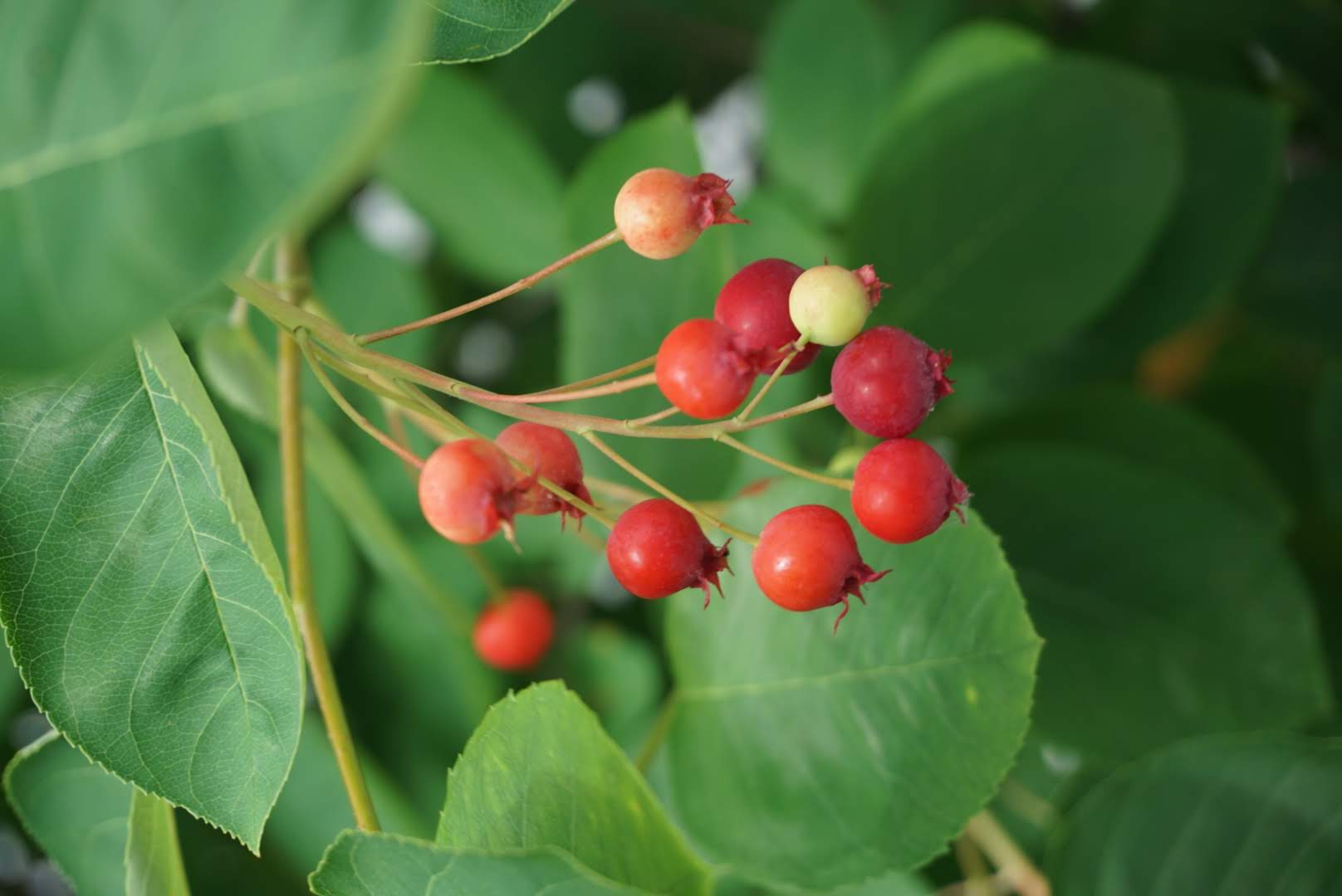 It bears fruit in summer; the fruit is spherical, red, and a pseudocarp.