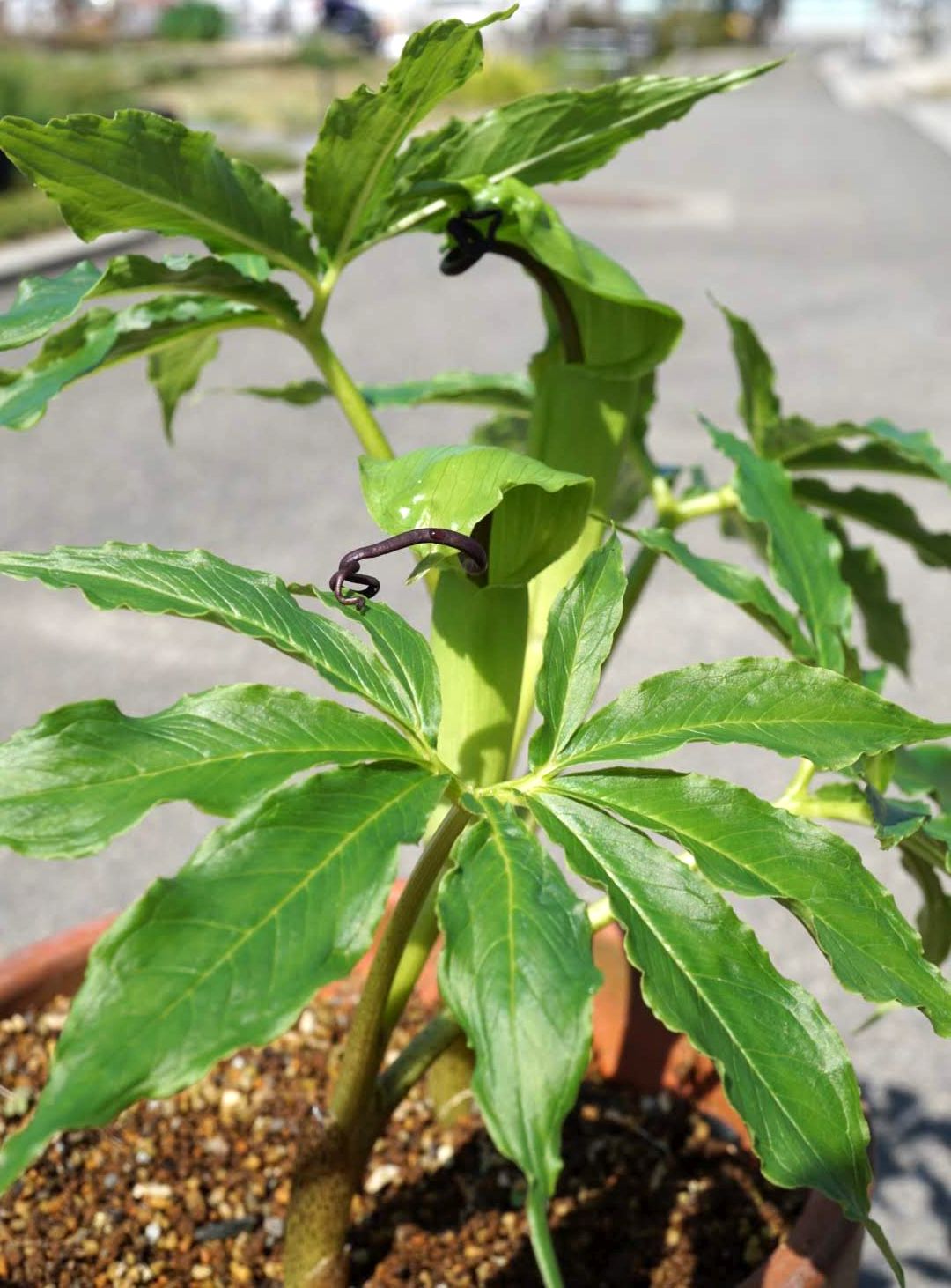 同種は先端が矢筈型の特徴的な葉を付ける.