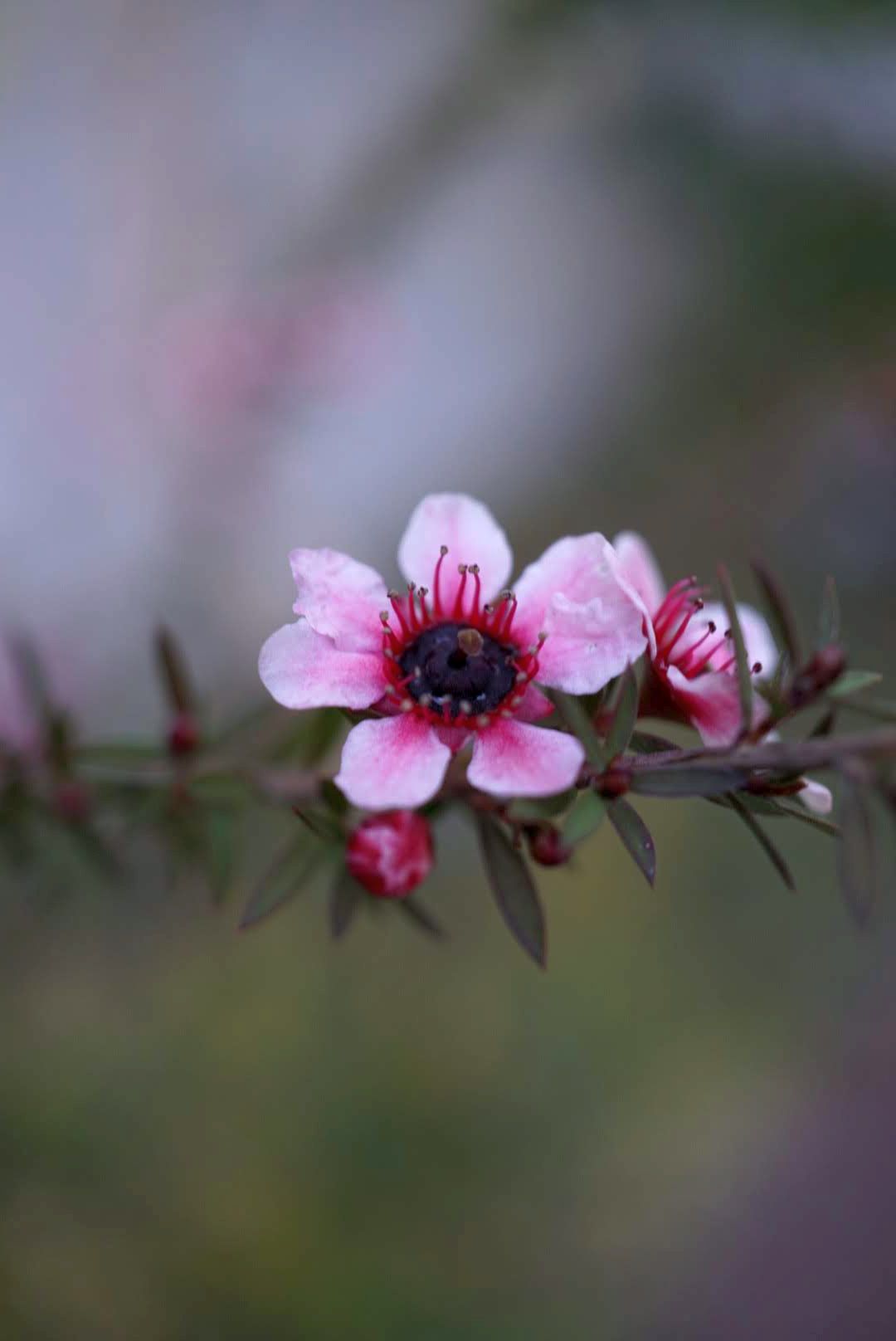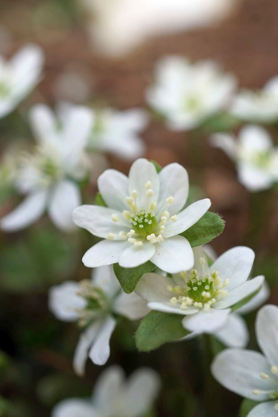 花期は4月、花は小型の白花で、5弁花、多数の雄しべがある.