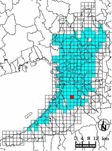 | 緑地は他の土地利用の状態や法律によって影響を受けやすいものです。したがって、緑地分布状態の変化を経年的に分析する必要が生じます。今後の展開としては、緑地が散在しながら増加(減少)した、まとまって増加(減少)したといったことを分析していく予定です。 |