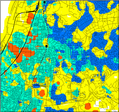 統計手法を用い、対象領域をあらかじめ設定したいくつかの密集タイプ毎に類型化し、