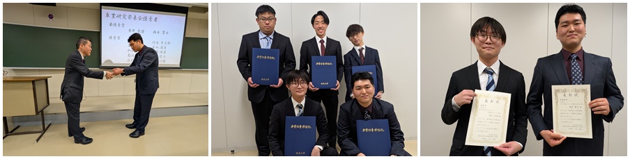 | 2026年3月に学位授与式が開催されました。 皆さんご卒業おめでとうございます。 橋本君、卒業研究最優秀入賞おめでとう。 本山君、卒業研究優秀入賞おめでとう。 |