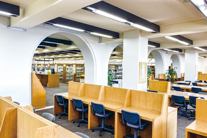約87,000冊が蔵書されている図書館には、薬学・看護学・農学関係の図書のほか、普通図書、参考図書、視聴覚資料などが整備されています。