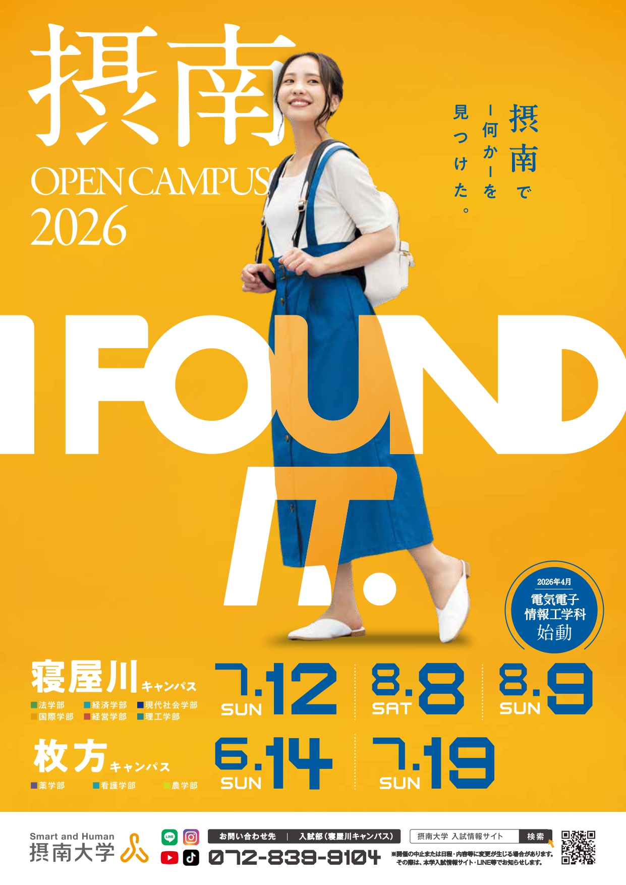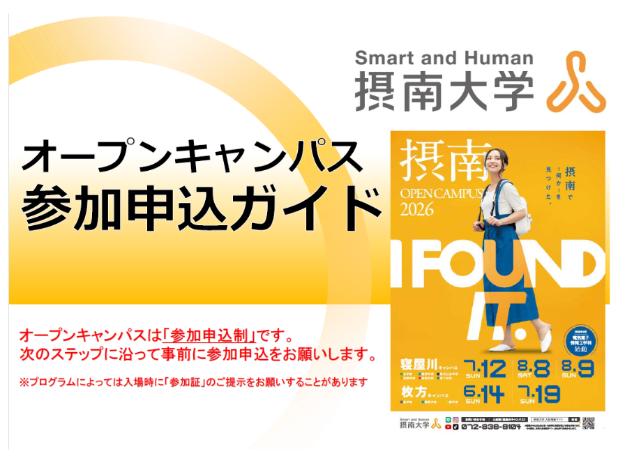 2026年3月14日(土)「春の枚方オープンキャンパス」は大変多くの方にご来場いただきありがとうございました!夏のオープンキャンパスに関する情報は近日公開予定です。