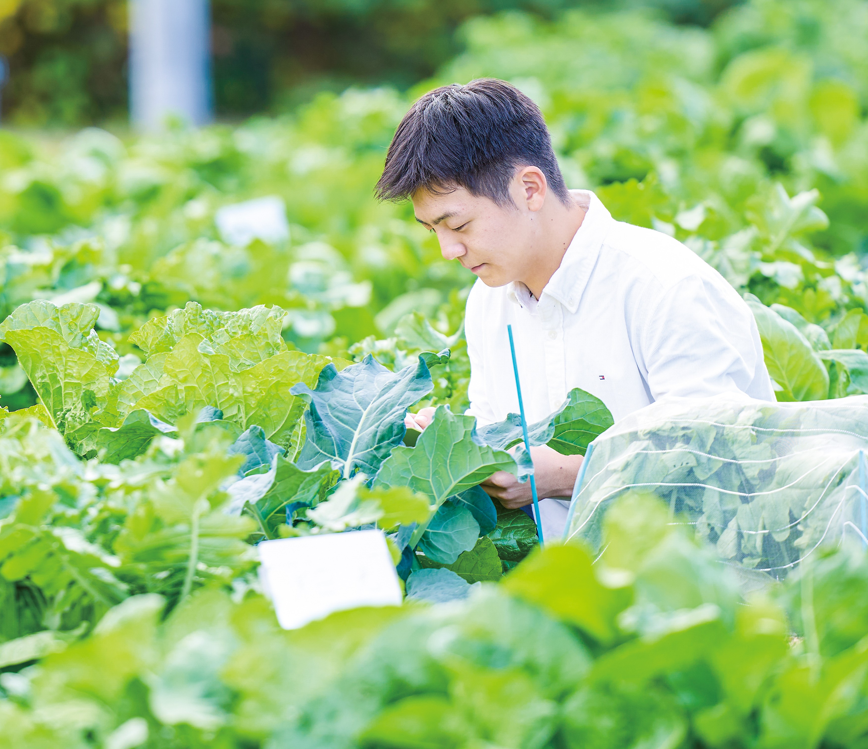 さらに本学部の特長は、他学科の授業を受けられる点です。私は食農ビジネス学科の授業を受けたことで、経済的視点でも農業をとらえるようになり、心血を注いで農作物を育てても収益が安定しない日本の農業体制に問題意識を抱くようになりました。
