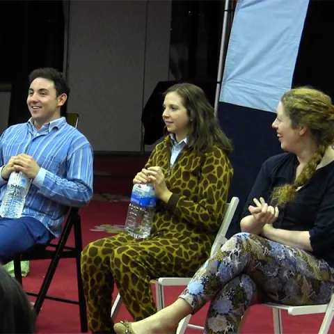 外国語を学ぶときには文字言語に意識が集中しがちですが、実際のコミュニケーションには文字にならない非言語要素、話し方(音量・強弱・スピード等)、相手との間合い、前後の文脈、などが重要です。伝え方のバリエーションを、演じたり、演技を観たりしながら試行錯誤していきます。