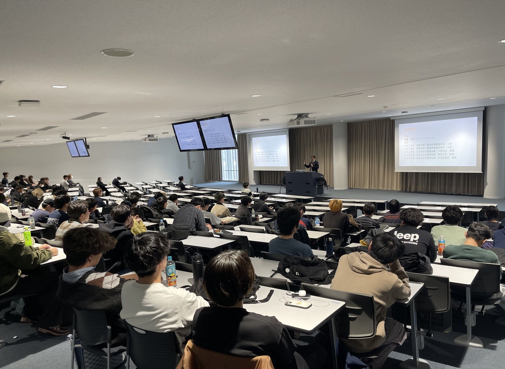 11月17日、授業「地域金融論」(担当:植杉大教授)において、北おおさか信用金庫から2名のゲストスピーカーをお迎えし、地域金融の現状と実務の最前線についてご講義いただきました。 そのうち1名は本学経済学部の卒業生であり、地域金融機関への就職活動の経験や、企業支援を通じて地域に貢献する仕事のやりがいについて、先輩として学生に寄り添った視点から語ってくださいました。さらに、事業性評価融資、伴走支援、創業・事業承継支援といった授業で学んだ理論が、実際の現場でどのように活用されているかを具体的に示していただきました。 また、地域のお祭りやイベントへの積極的な参加・協力など、従来の融資業務にとどまらず「地域とともに歩む金融機関」としての役割を果たしている点も紹介され、金融機関の地域密着性を実感できる内容となりました。