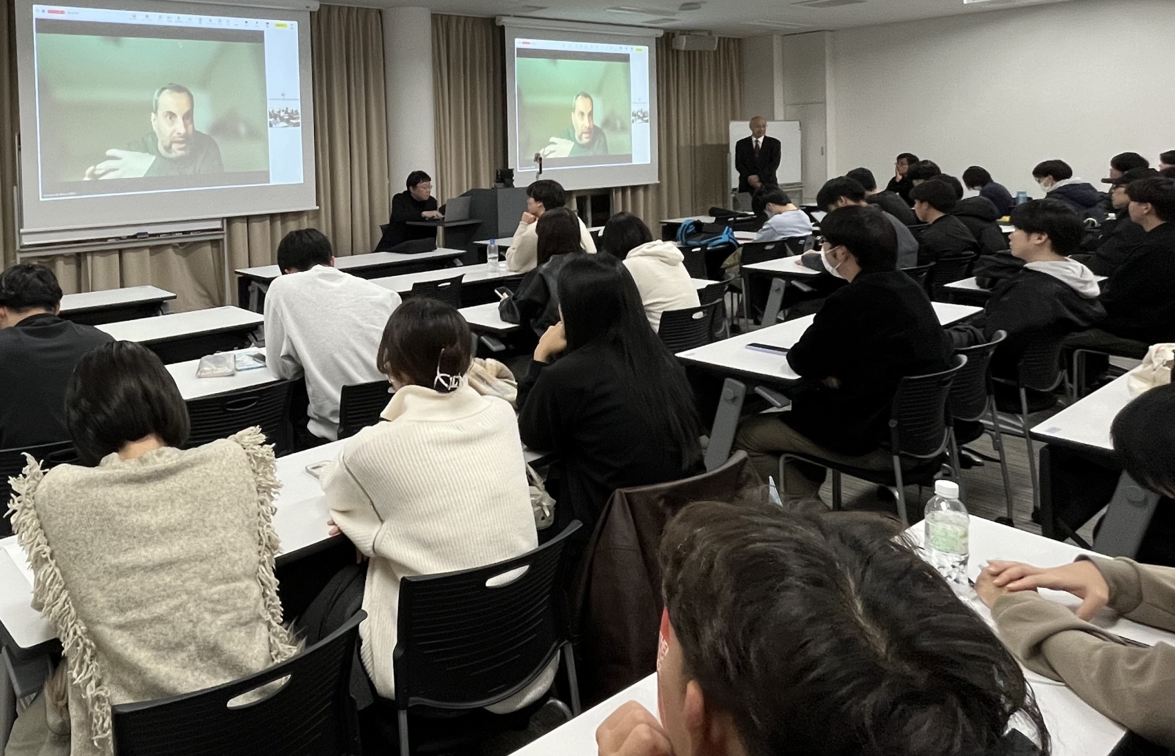 なお、当日、出席した学生数は約120人であり、また、講演は逐次通訳付きの英語で行われました。