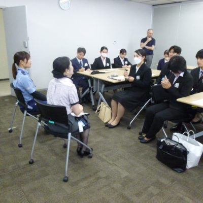見学終了後は参加者と年代も近い入社間もない若い社員の方々との懇談会も実施され、空港の仕事内容のみならず社会人としての心構えや就労意識についても活発な質疑応答がかわされ、今後の就職活動にも大きな動機付けになったようです(写真④)。