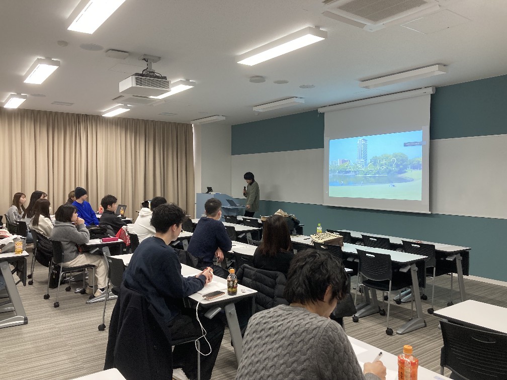 当日は4年ゼミ生以外に、3年ゼミ生および2002年度・2012年度・2020年度の卒業生、さらには他大学の職員の方が対面で出席し、休学してインドネシアへ留学中の4年ゼミ生1名がオンラインで参加しました。