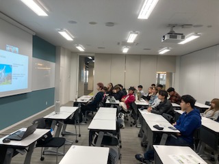 2024年5月16日、2年次対象の授業「インドネシア語と現代文化」において、ストモ博士大学文学部のシシリア・タントリ・スルヤワティ(Cicilia Tantri Suryawati)学部長に「インドネシアのいま」と題した講義をしていただきました。講義はインドネシア語で行われ、授業担当教員の浦野が通訳し、補足説明しながら進めました。学生たちからは、「普段の授業で扱われている、インドネシア語がよりさらに流暢で聞き取りにくく、これが本場レベルなんだと感じた」「この授業で、インドネシアのネイティブの人の喋り方を聞いたことで、インドネシア語がどのような速さでしゃべられているものなのかが分かった。想像していたよりもとても早口で聞き取れない部分も多かった」「インドネシア語を聞き取るには難しかったが日常会話ができるくらいにはなりたいと思いました」といったように、インドネシア語のレベルに驚きを感じていたようですが、今後のインドネシア語学修に大きな刺激となったようです。
