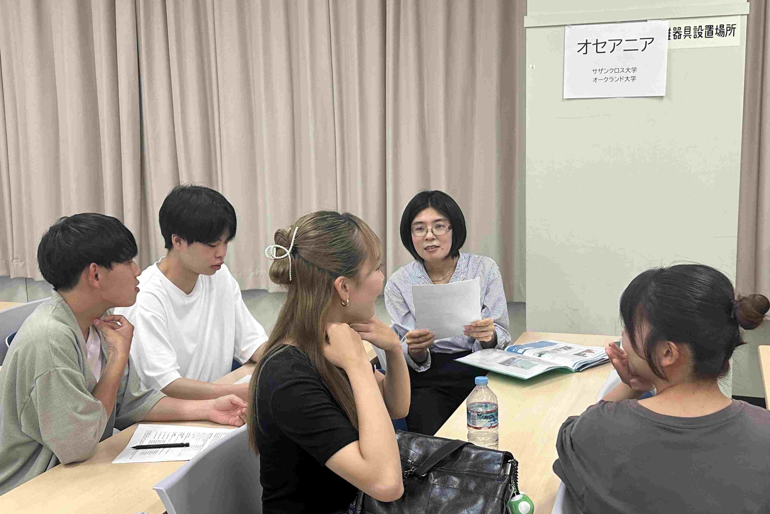 2023年度末に海外留学(長期)から帰国した学生による報告会と2025年度前期留学説明会を、2024年7月9日(火)に合同で開催しました。これには、長期留学に関心を持つ1年次から3年次までの学生が参加しました。