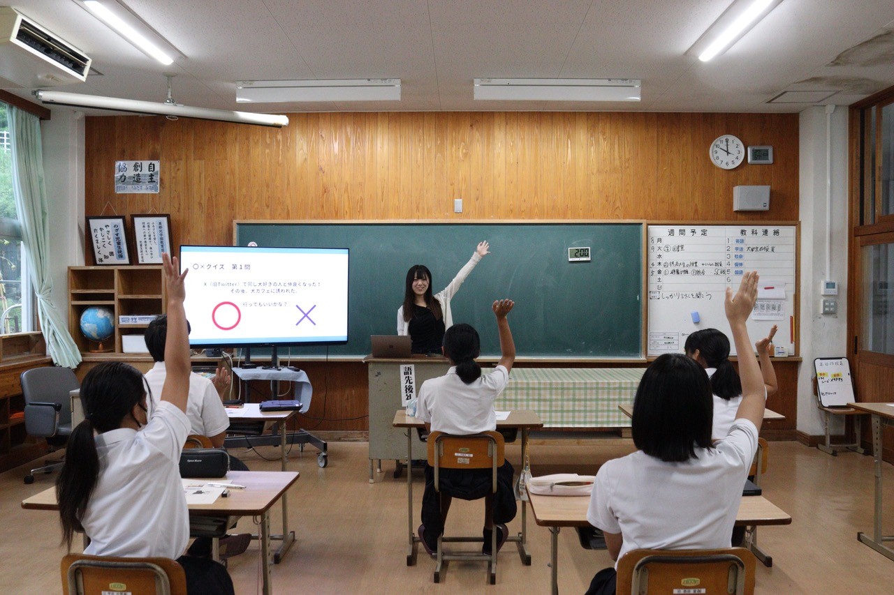 9月1日から5日間、宮崎県にある美郷町立美郷北義務教育学校(在校生69名)において、本学部久保研究室に所属する学生7人(4年次1人、3年次4人、2年次2人)が、小・中学生を対象に「デジタル」や「キャリア」についての授業を開催しました。