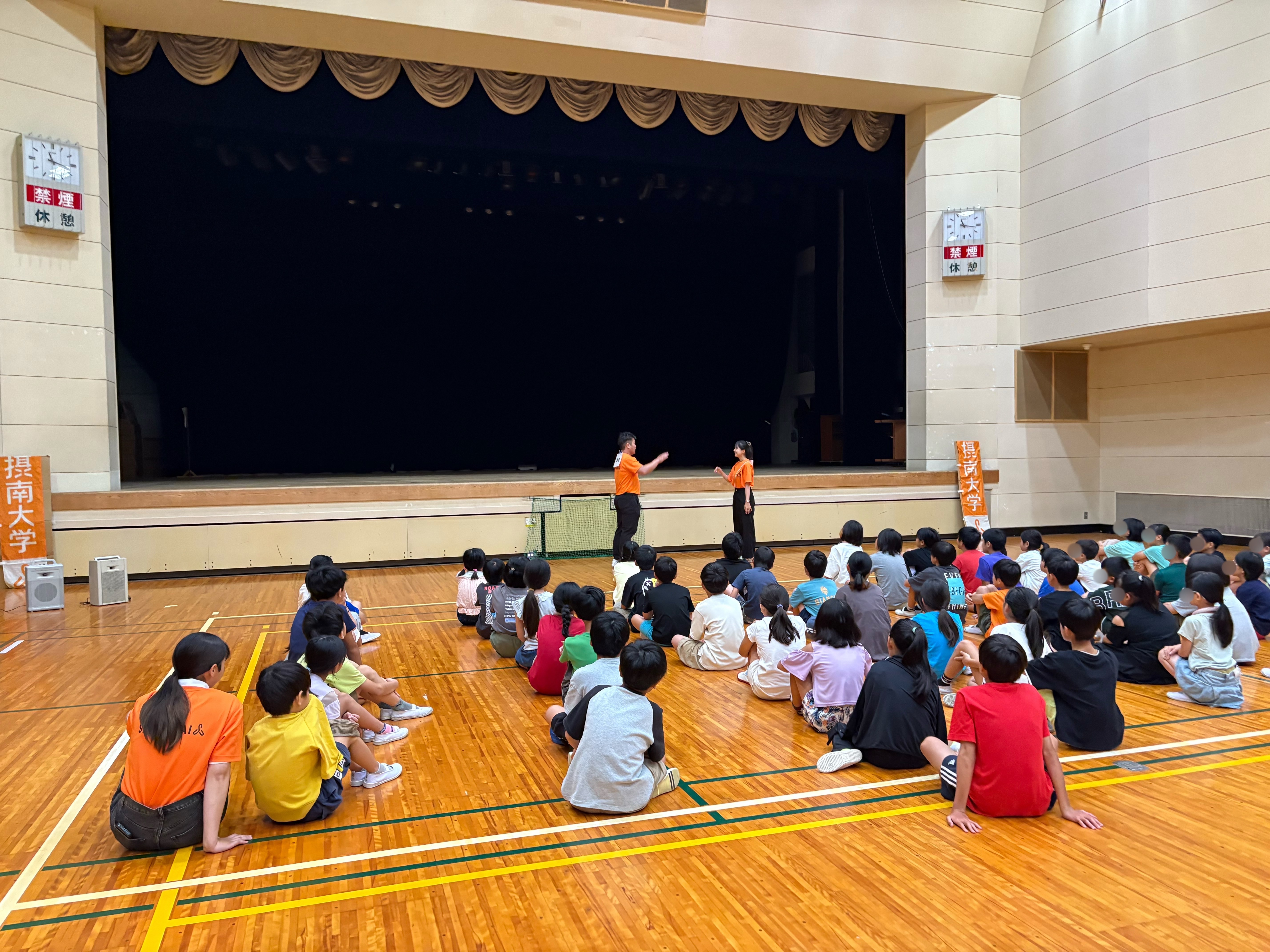 参加した学生(経営学部3年 在田篤司さん)は「様々なプログラムにおいて、児童たちが真剣にルールを聴き、一級忍者になるために一生懸命取り組んでいる姿がとても印象に残っています。ここで学んだ礼儀やマナーを、普段の生活でも生かしてもらえたらうれしいです」と話していました。