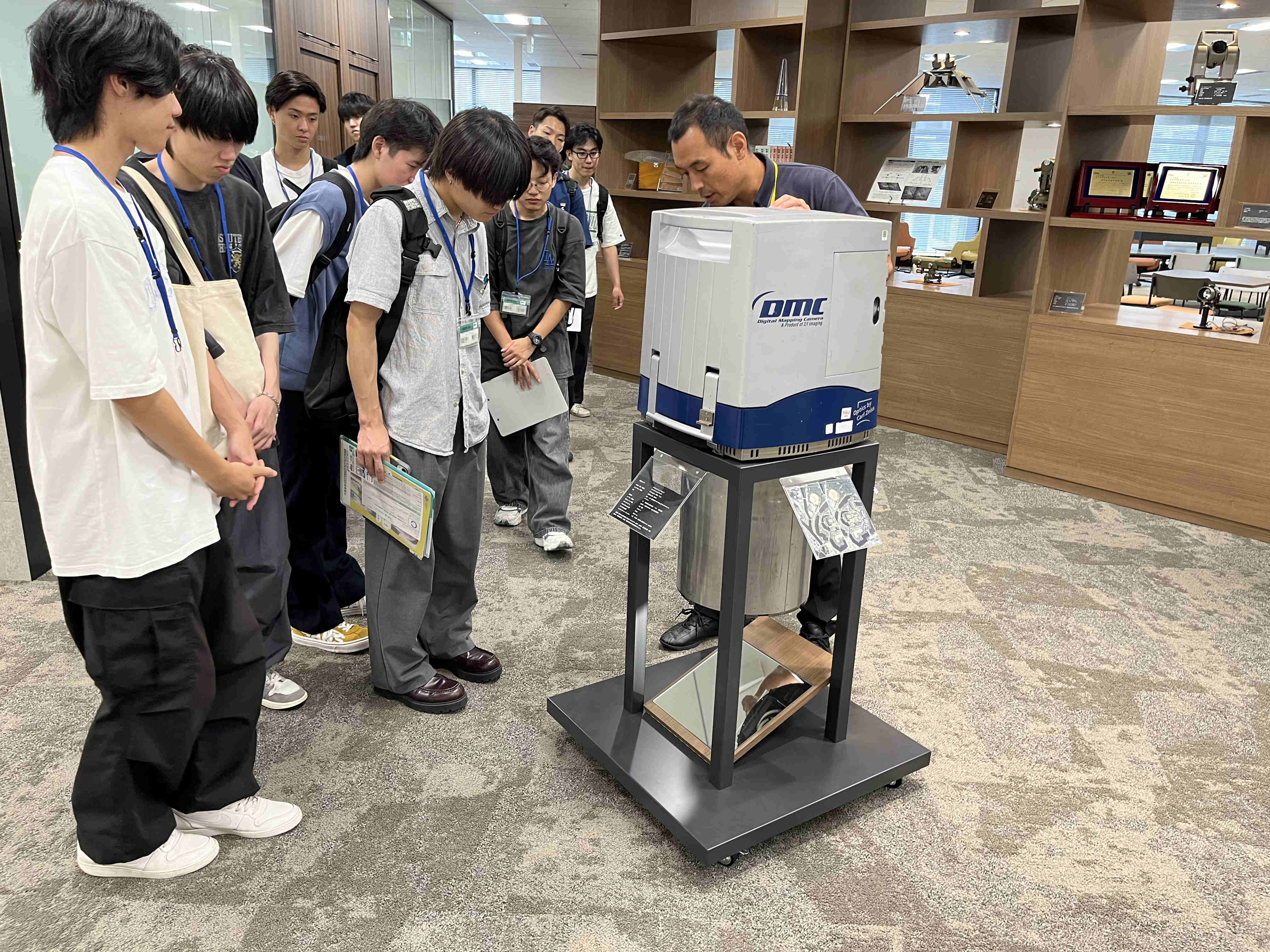 はじめに、事業統括本部西日本地理空間情報部地理空間グループ長にアテンドいただきながら、事業所内に陳列されている機材などの説明を受けるとともに、国際航業の歴史や事業内容の概要を紹介いただきました。その後は、事業部ごとの詳細を説明いただきました。見学会の終盤では、若手技術者の方々と座談会形式で具体的な事業内容について対話する機会をいただきました。