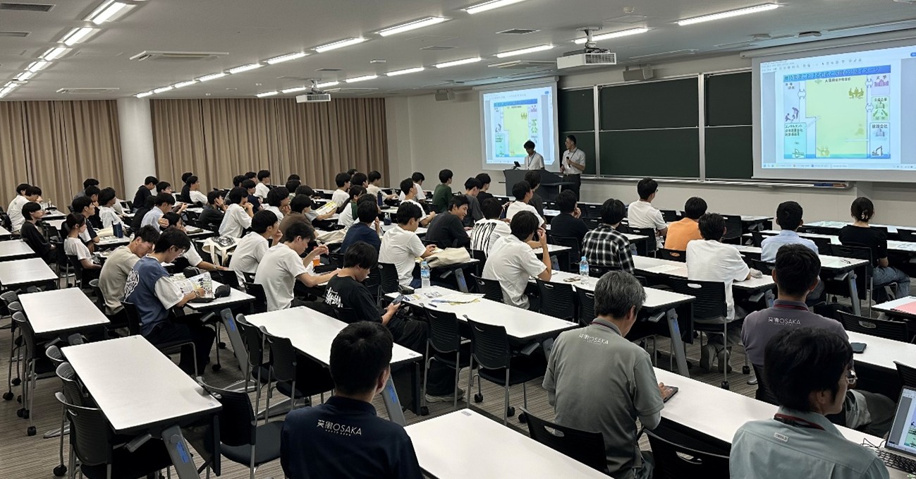 午前に開催した講演会では、大阪府都市整備部の皆さまにお越しいただき、インフラ構造物の維持管理についてご講演いただきました。八潮市道路陥没事故といった新しい話題にも触れつつ、維持管理にあたっての産・官・学連携の取り組みや、行政の多岐に渡る維持管理業務について、分かりやすく説明してもらいました。また講演の途中では、「少子化の中での人材確保、業務効率化・省力化」のテーマでグループワークを実施し、学生が意見を発表しました。今回の講演やグループワークでの議論を通じて、学生は維持管理の大切さと難しさを学ぶことができました。