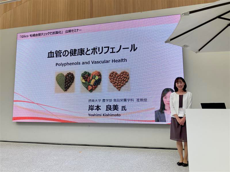 「Glico 毛細血管チェックで抗酸化」に、食品栄養学科の岸本准教授が登壇し、