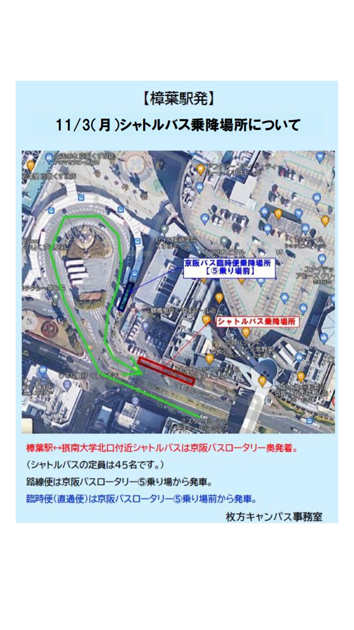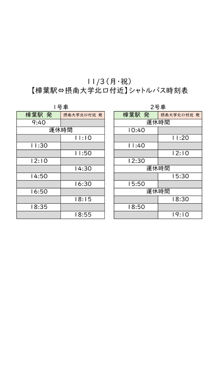 【枚方校地】11/3(月・祝)のバス運行について