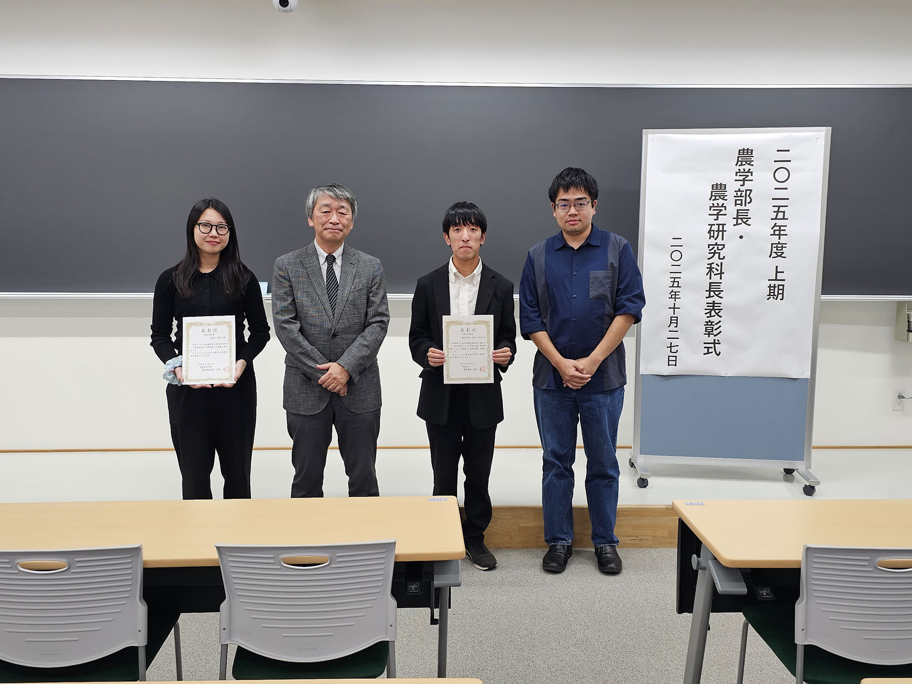 2025年10月27日(月)に、2025年度上期 農学部長・農学研究科長表彰式を行いました。