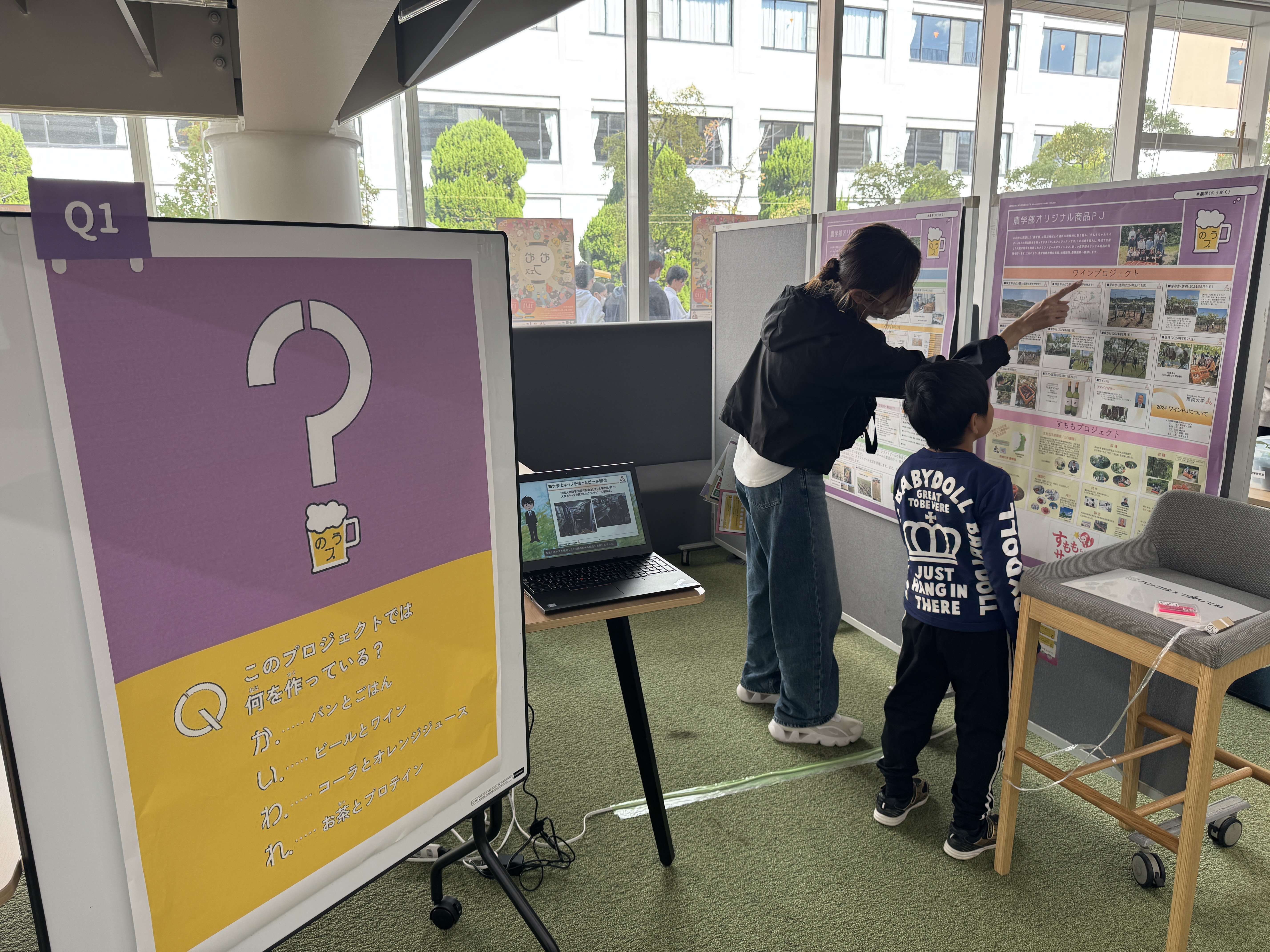 活動報告ブースでは展示ポスターの内容からクイズを出題。クイズを通して導き出される秘密のキーワード「いどむたのしむ」を正しく並び替えた来場者には、「むむプ」オリジナルラムネをプレゼントしました。楽しみながらプロジェクトの活動を知ってもらう機会となりました。