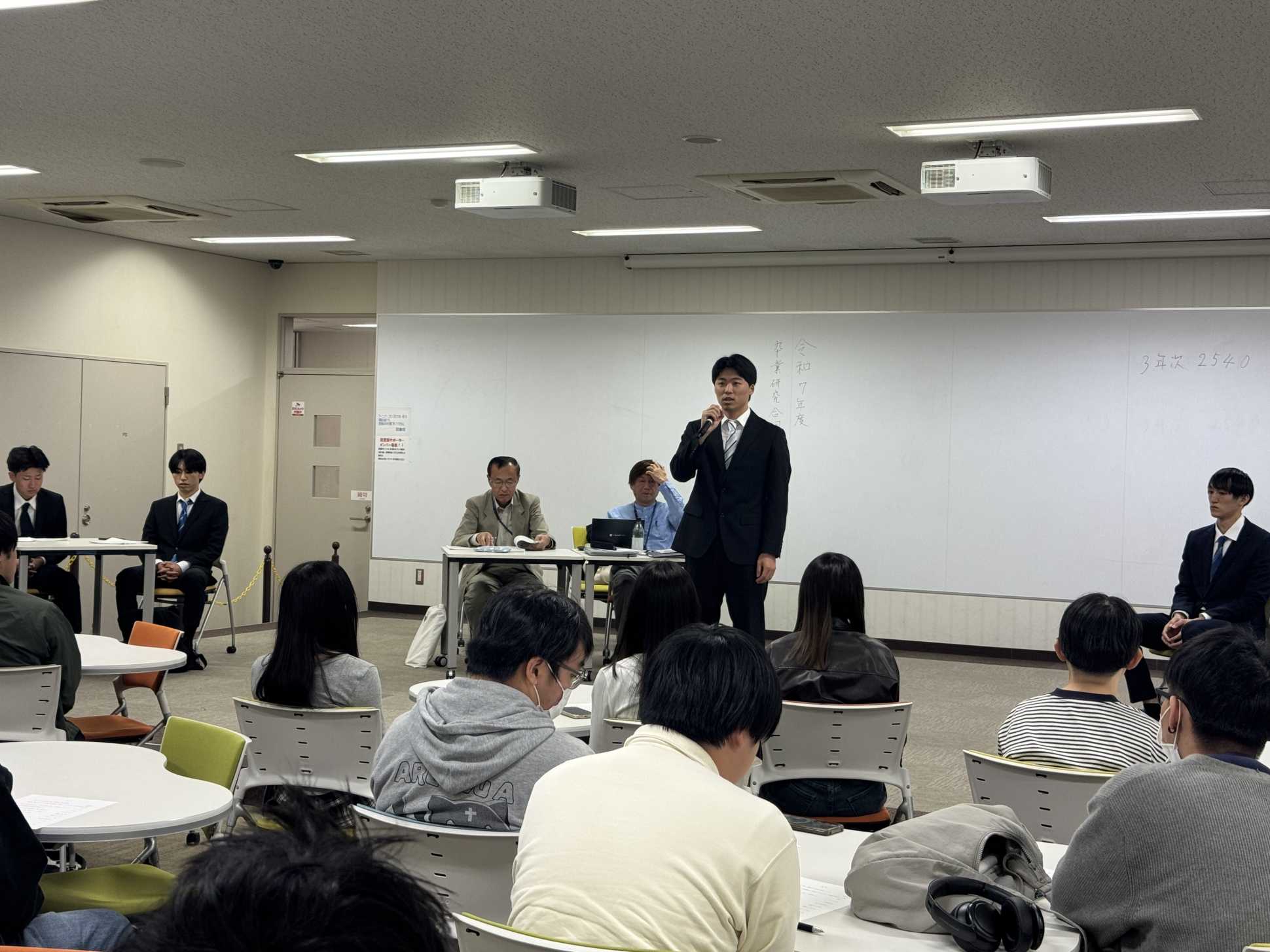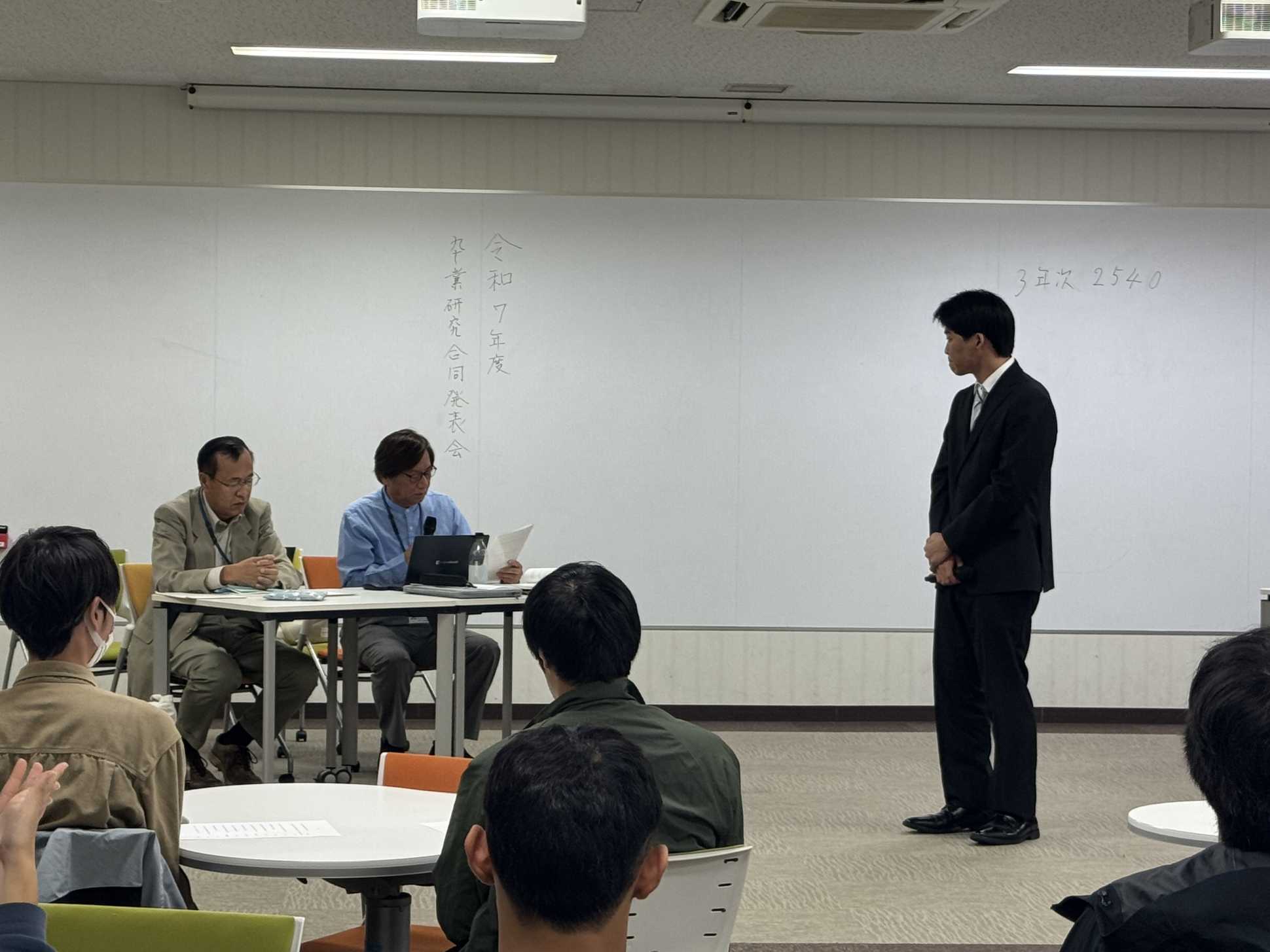 当該発表会は、4年次のゼミ生(寺山ゼミ)が、3年次のゼミ生(寺山ゼミ・團野ゼミ)等に対し、これまで取り組んできた卒業研究の要旨について発表するもので、個々の発表後、質疑応答と担当教員による講評が、それぞれ行われました。