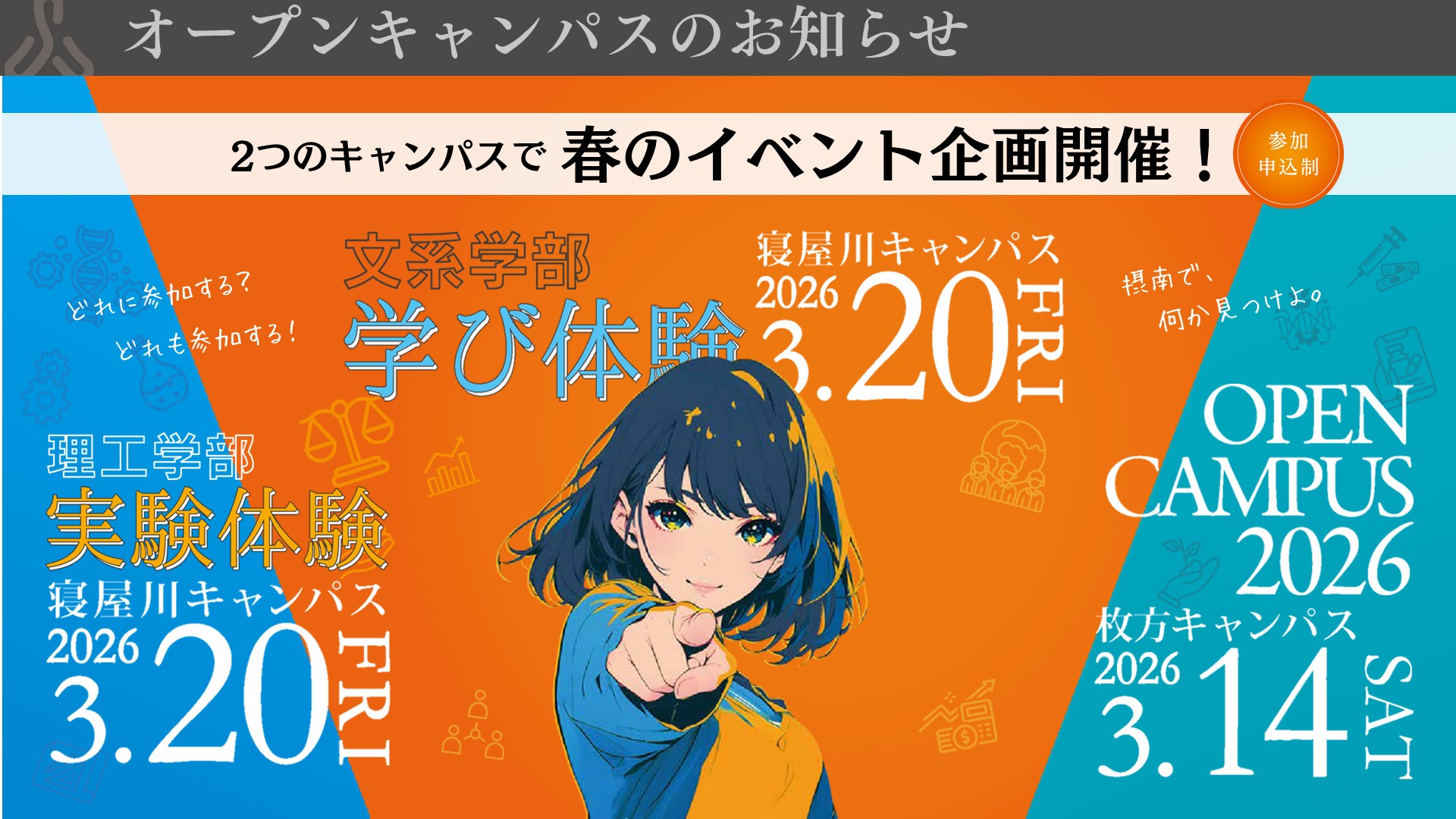2026年オープンキャンパスメインテーマ「I FOUND IT.-摂南で“何か”を見つけた。-」
