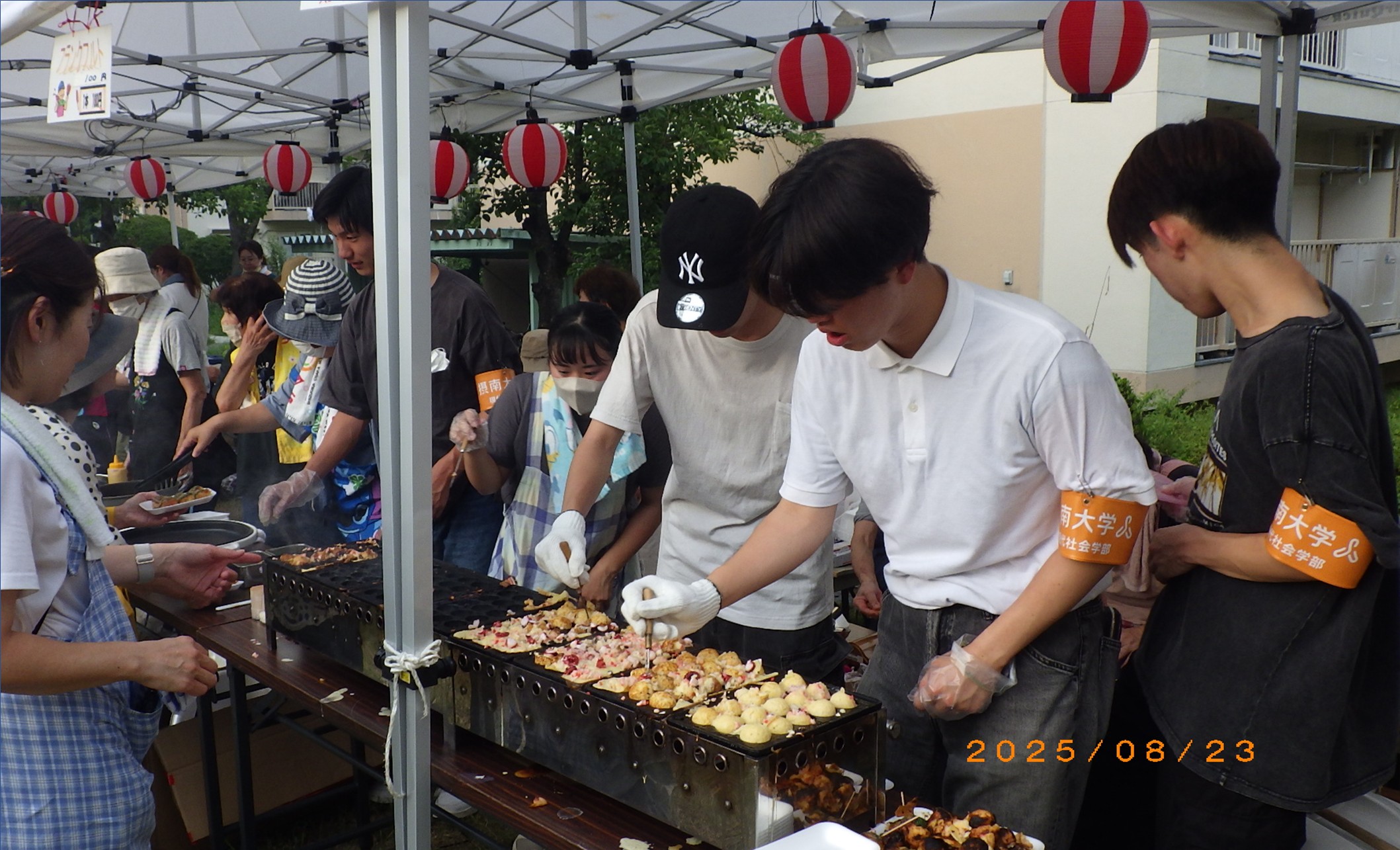 男山団地B地区団地祭りではたこ焼きで奮闘!