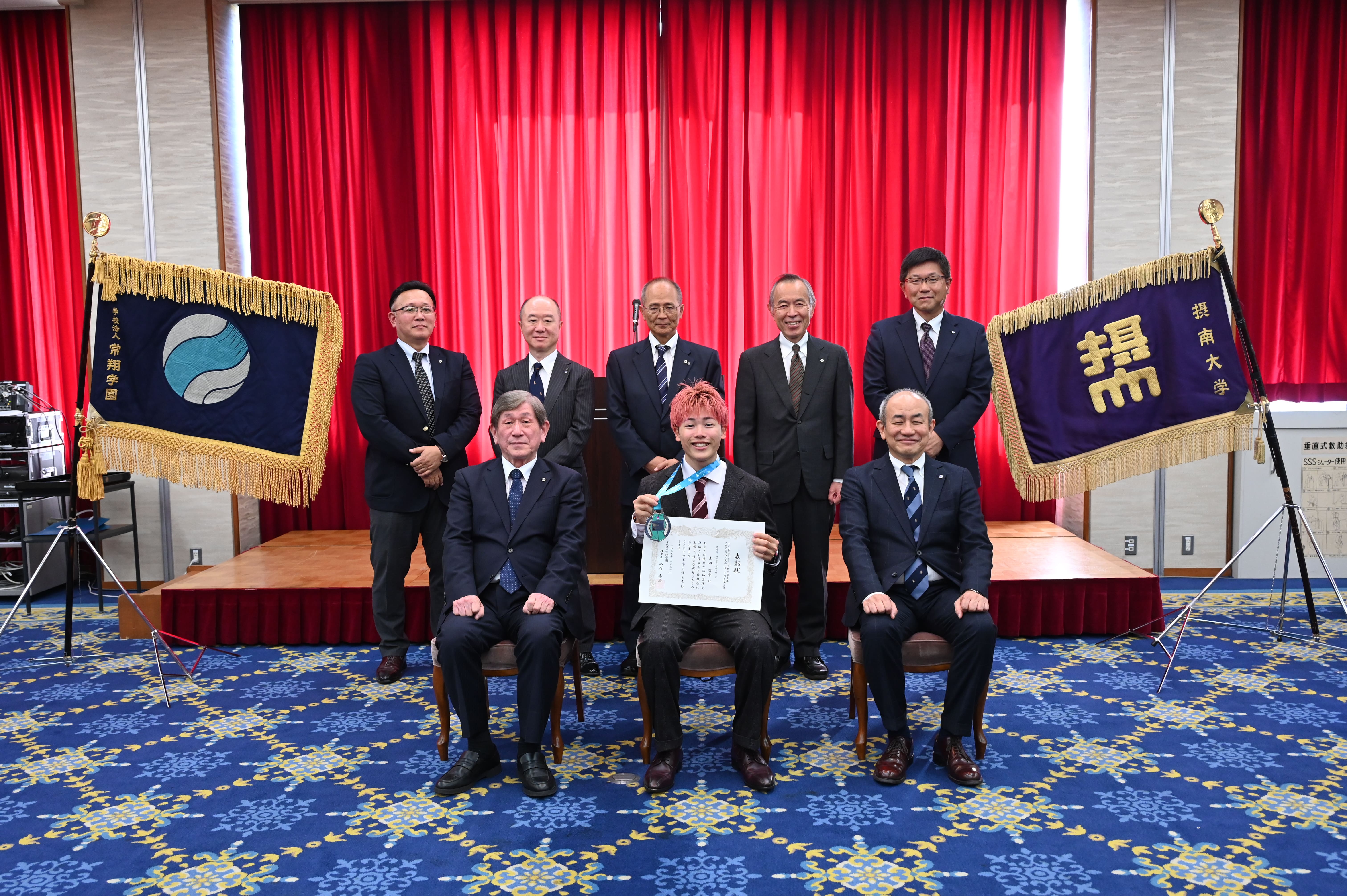 【体育会スポーツクライミング部:吉田智音】理事長から表彰状を授与