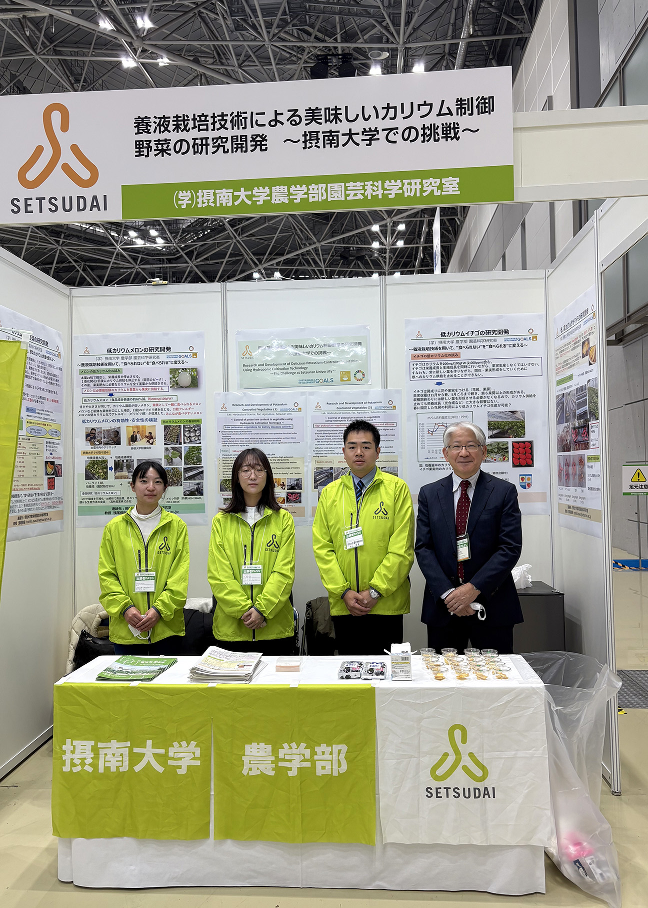 2025年11月26日(水)〜28日(金)、東京ビッグサイト(東京都江東区有明)で開催されたアグリビジネス創出フェア2025(農林水産省主催)に摂南大学農学部園芸科学研究室が出展発表しました。