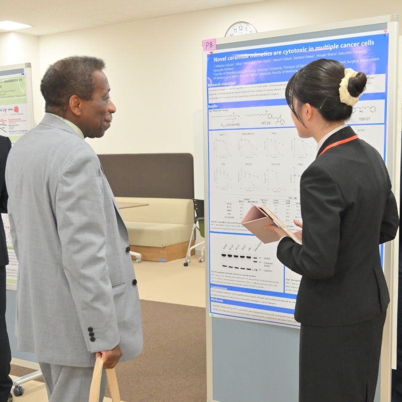 15日にはポスターセッションが開催され、本学薬学部・農学部の学生も発表者として参加し、活発な意見交換が行われました。