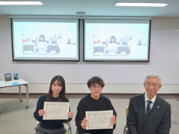 今年度は文芸、美術工芸、写真、その他の4部門に計25点の応募があり、12月19日(金)に寝屋川本館のラーニングコモンズと、枚方分館では8号館のラーニングコモンズをオンラインで中継し、表彰式を挙行しました。