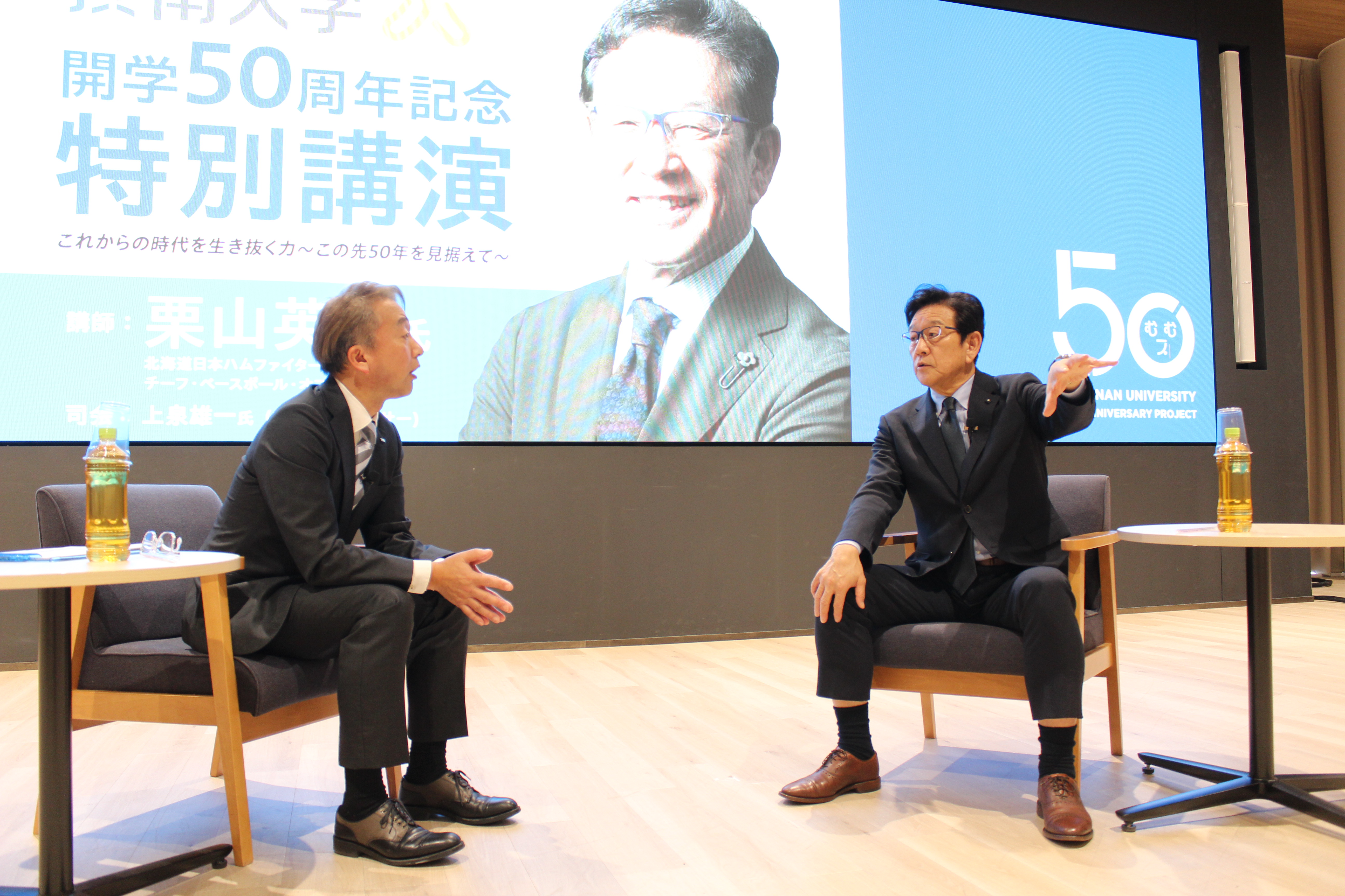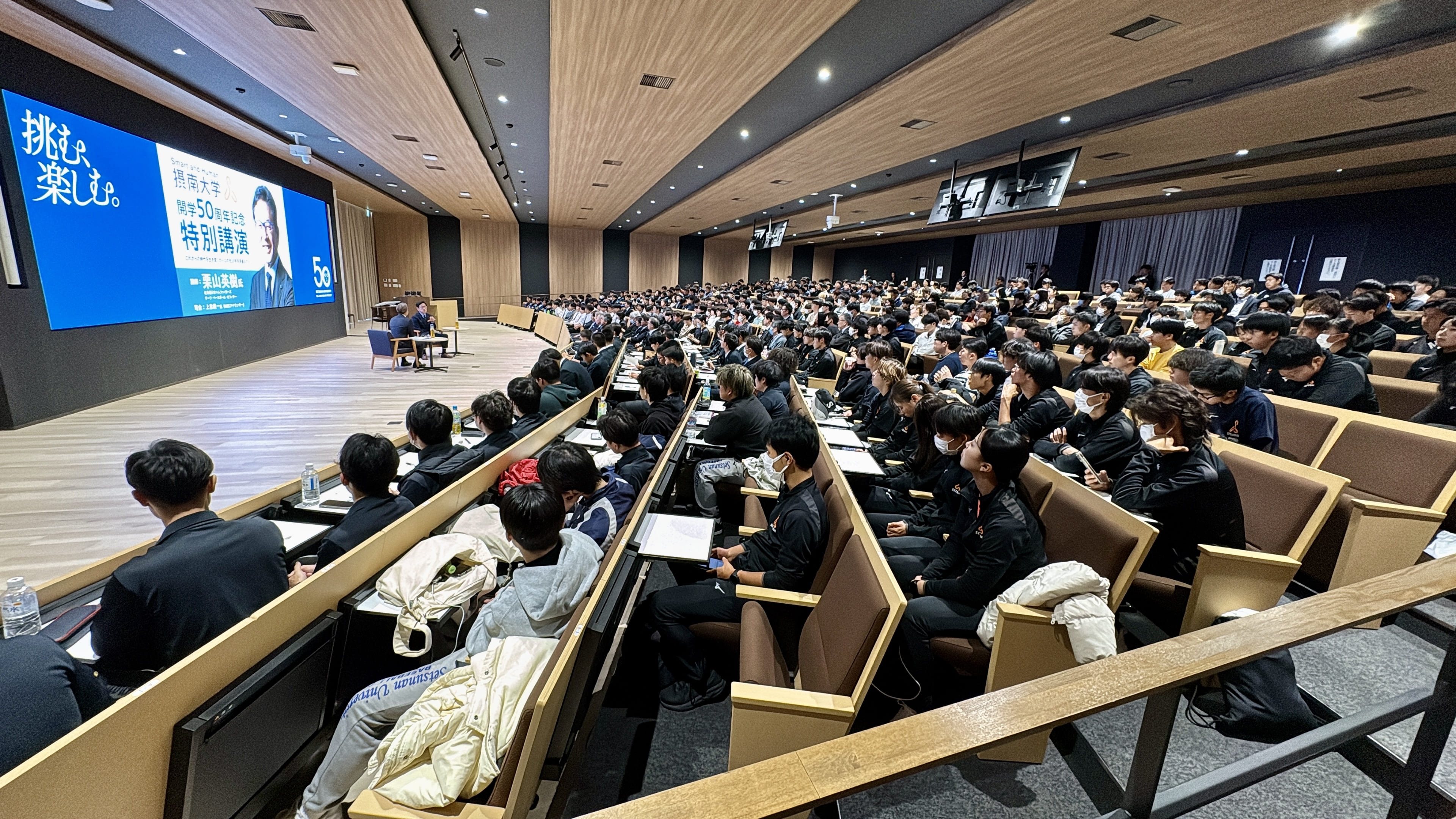 2025年12月20日、摂南大学開学50周年記念事業の一環として、日本ハムファイターズCBO(チーフ・ベースボール・オフィサー)で野球日本代表「侍ジャパン」元監督の栗山英樹さんを迎えた講演会を開催しました。