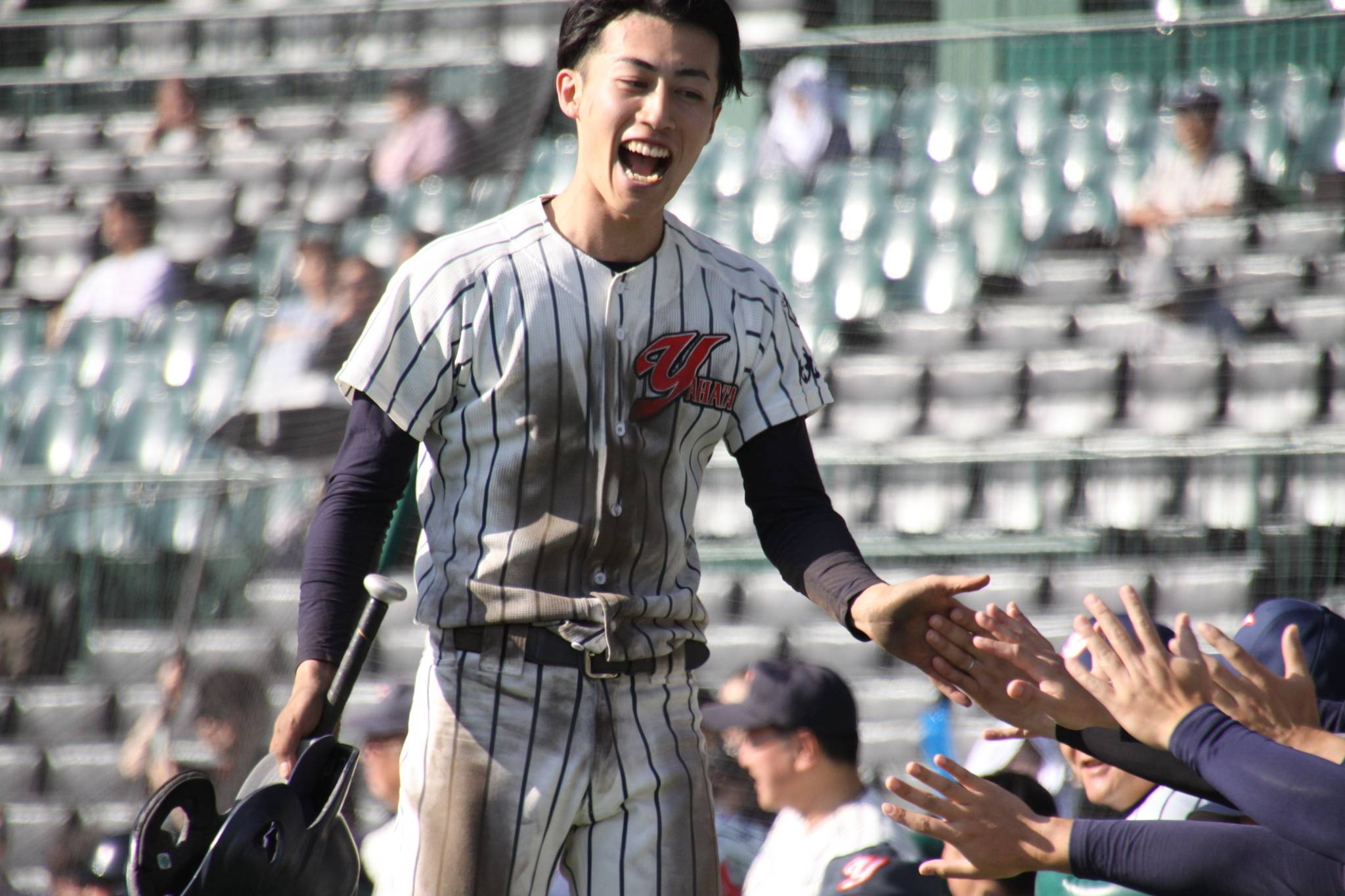 ベンチに戻り喜びを分かち合う選手