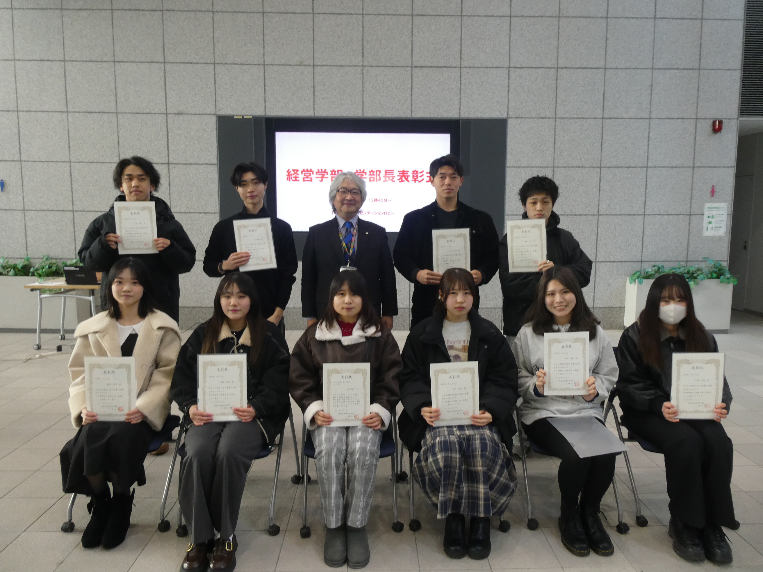 経営学部学生の学業成績、資格取得意欲の向上と研究活動の促進を図るため、成果を挙げた学生に対する表彰です。