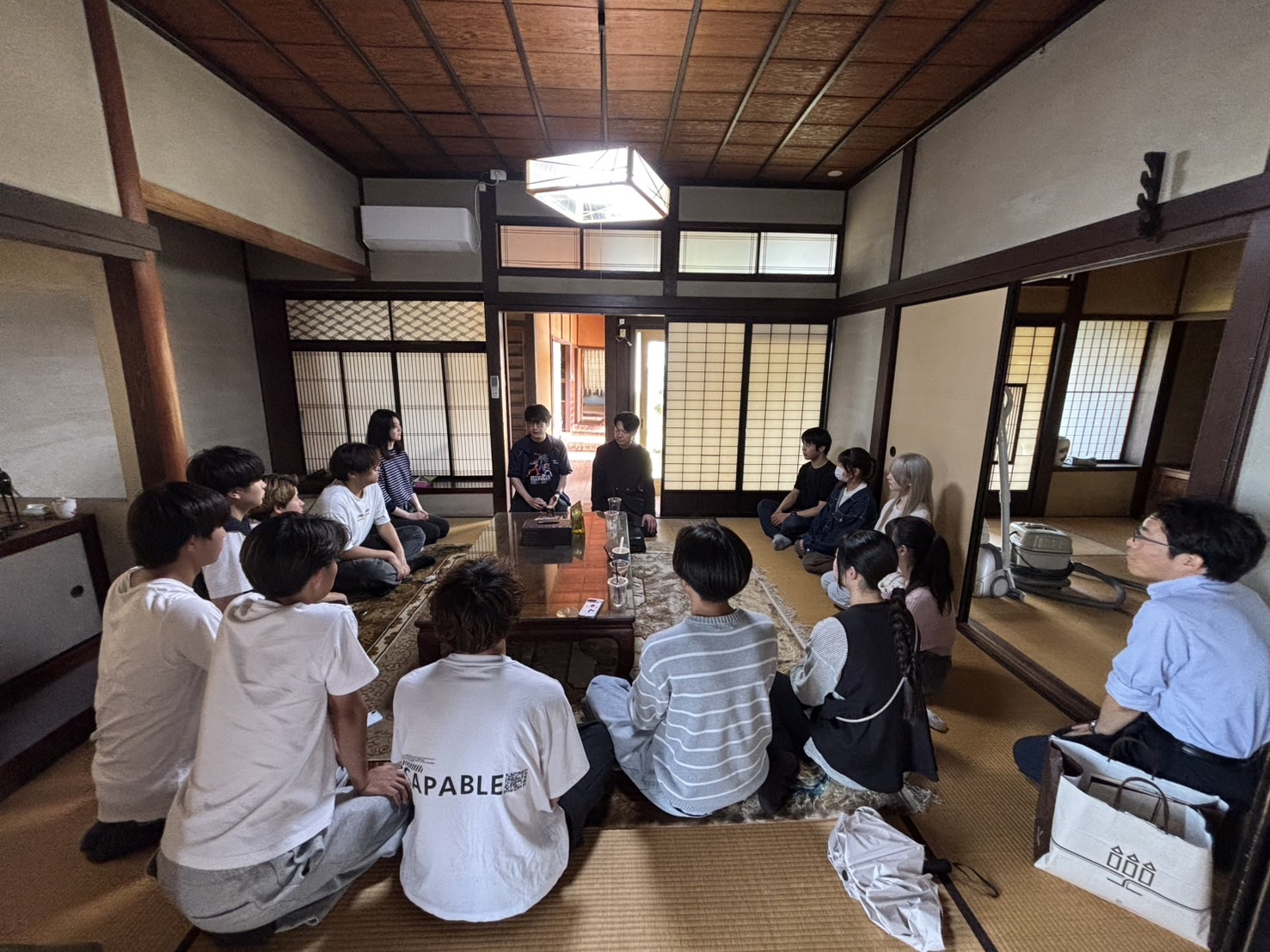 ⑤プロジェクトの成果:まず、地域内および周辺の観光スポットを実際に巡ることで、出石町および豊岡市の多様な魅力を体験的に理解することができた。出石城下町などの有名観光地に加え、近年新たに誕生したカフェや比較的知られていない場所なども訪問し、観光資源の幅広さを実感した。空き家の清掃・整理に関しては、雑草が繁茂し、前の家主の所有物が多数残された状態で居住が困難であった建物について、連携先の方を中心に進められた作業に学生も参加し、清掃および物品整理を行った。その結果、生活や利用が可能な状態へと改善され、学生としてもその労力の軽減に一定程度貢献することができた。さらに、出石だんじり祭りへの参加を通じて、地域の伝統文化を実体験するとともに、地域行事を支える人々と直接関わる機会を得た。活動に対して地域住民から感謝の言葉をかけていただく場面もあり、学生にとって地域との関係性を実感する重要な経験となった。