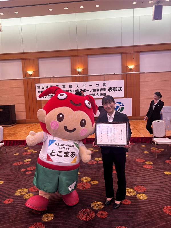 この度、三重県スポーツ優秀賞を受賞することができ、大変光栄に思います。今年度は日本代表としてワールドカップに出場させていただき、多くの経験を通して心身ともに大きく成長することができました。ここまで競技を続けられているのは、家族やコーチ、大学関係者の皆様の支えがあってからこそだと感じており、心から感謝しています。今後もさらに努力を重ね、良い結果を報告できるよう頑張りますので、引き続き応援よろしくお願いいたします。