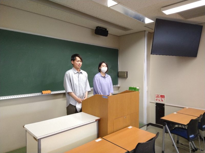 今回の「インドネシアとマレーシアをよりよく知るための集まり」は、留学や卒業後の進路により、インドネシアとさらに深く関わっていくことを決めた外国語学部4年生の徳見賢太郎さんと西岡和望さんを迎え、それぞれの応募の動機や経緯、大学で学んだこととの関連、その他、参加学生へのアドバイスなどを話してもらいました。発表を聞いたのち、参加者との懇談もおこないました。