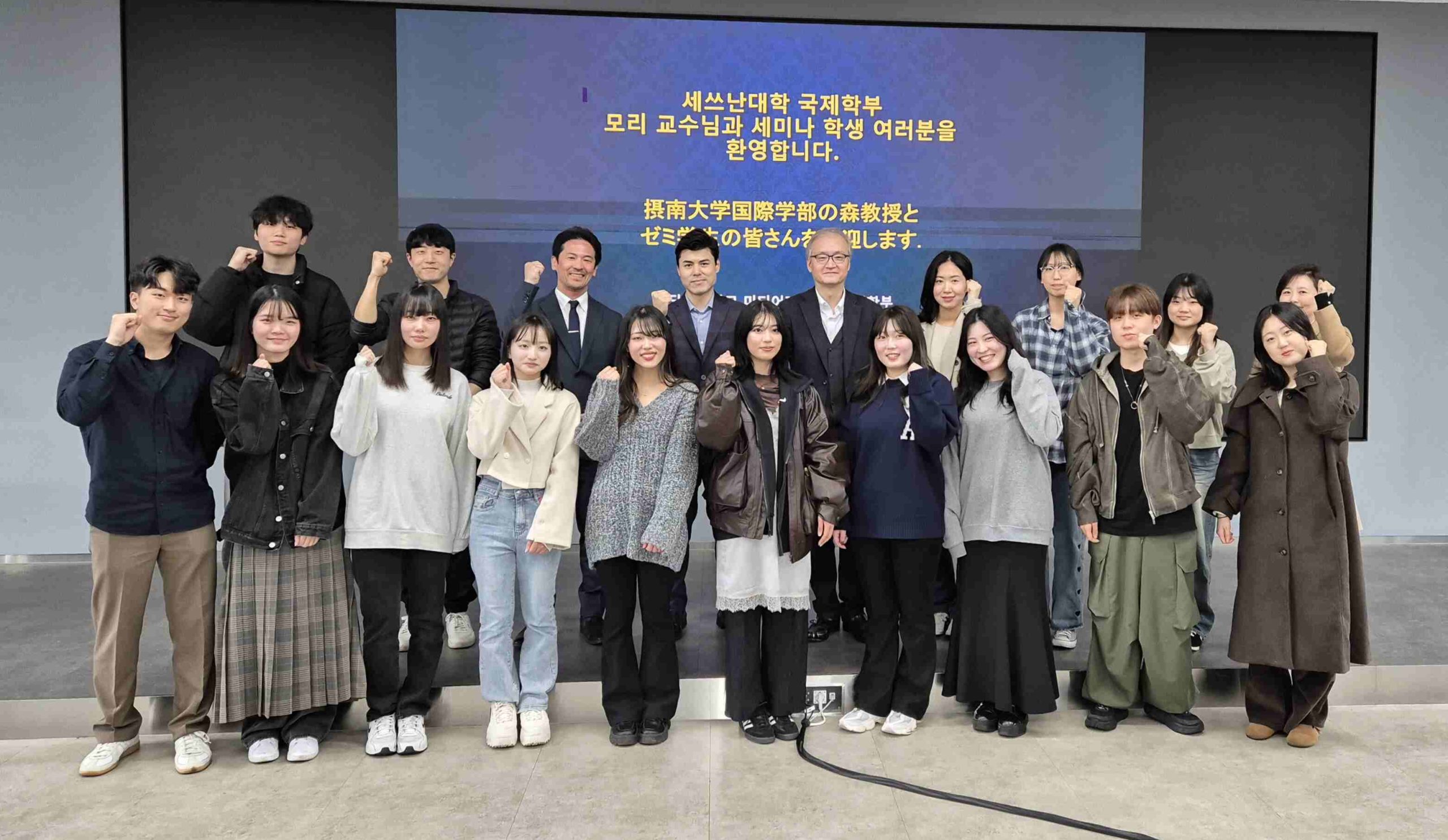 今回の発表会・学生交流は、貴重な経験で良い刺激となりました。お忙しい中、私たち森ゼミナールの訪問にお時間を取っていただいたカンネウォン先生・キムハナ先生・チョンチャンウォン先生そして壇国大学の学生の皆さんに心からお礼申し上げます。감사합니다!