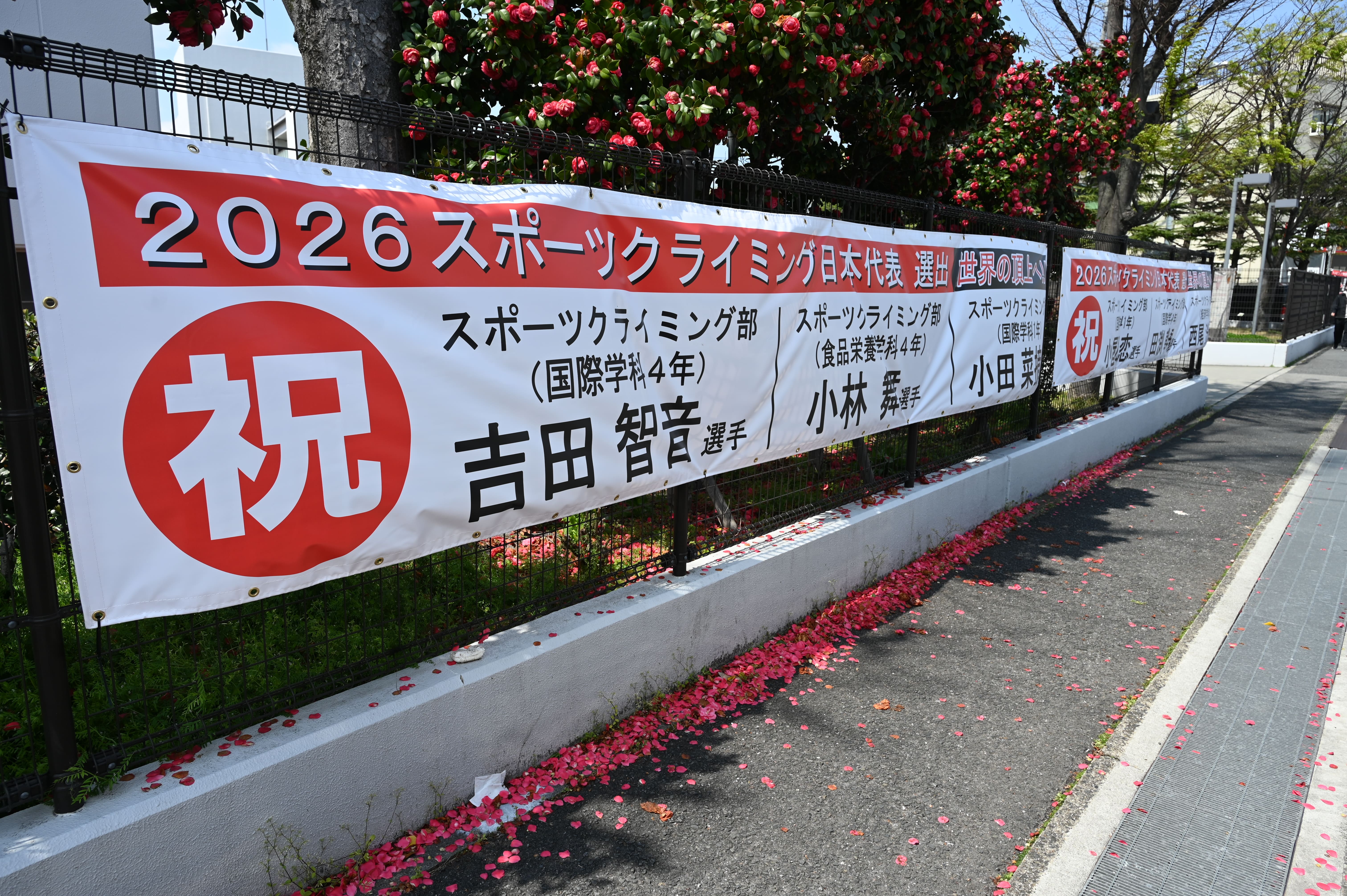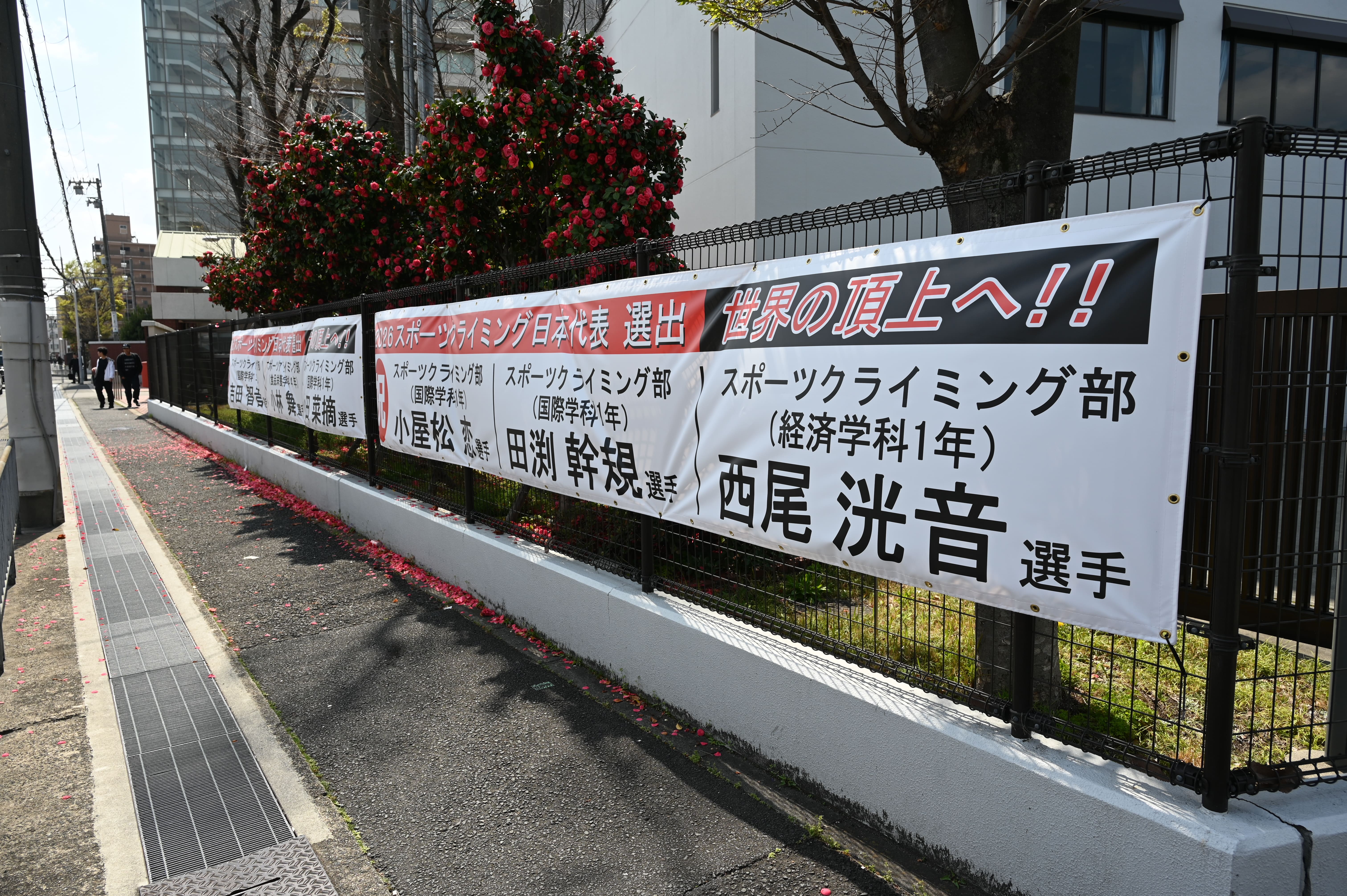 2026年スポーツクライミング日本代表に同部から6人の部員が選出されたことに伴い、横断幕を作成し、寝屋川キャンパス駐輪場横のフェンスに掲出しました。