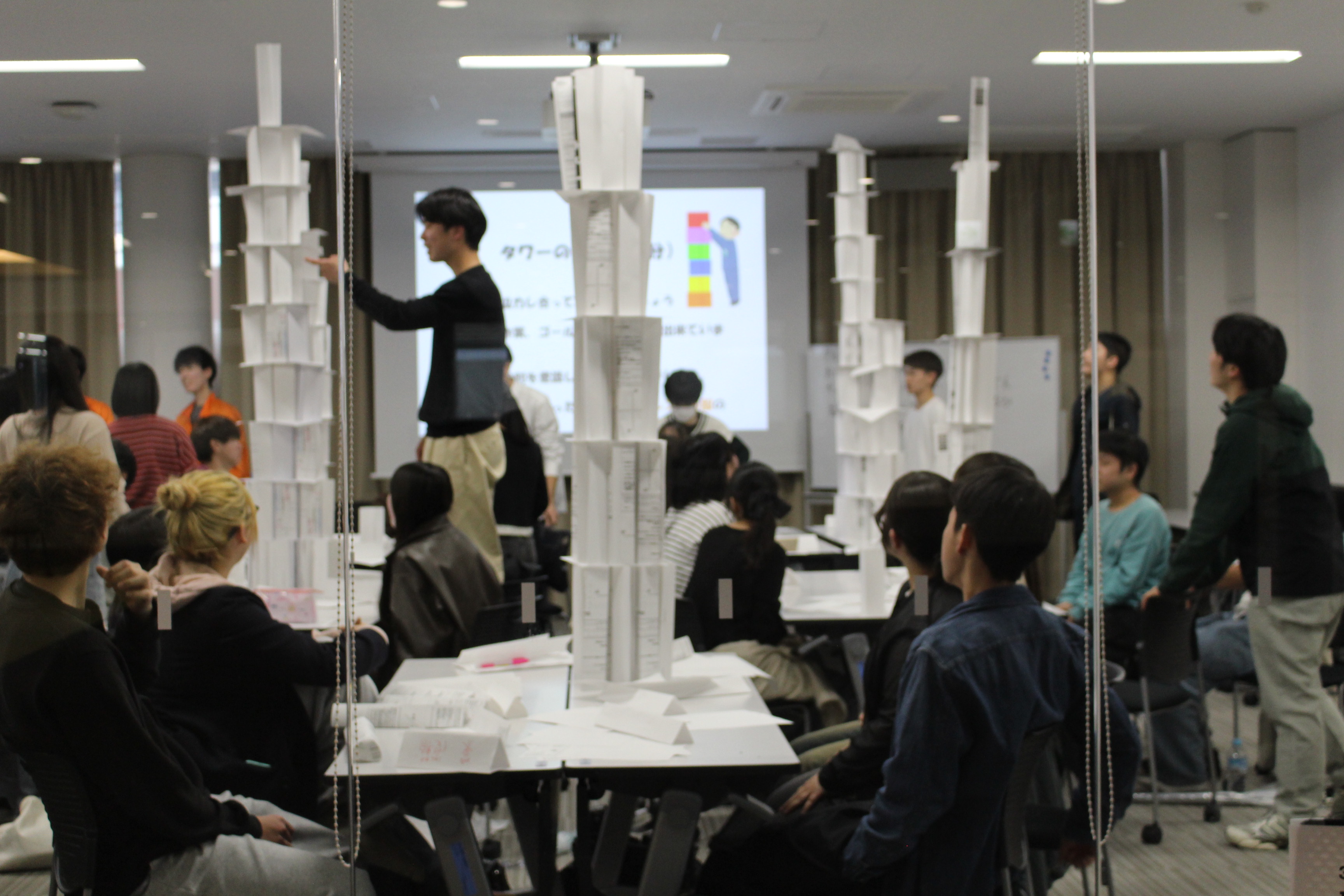 今年度は、「自分のコミュニケーションスタイル」「相互理解を深める」「ペーパータワーワークや協働ゲーム」など、グループワークを通した協働学習の体験をテーマに実施しました。