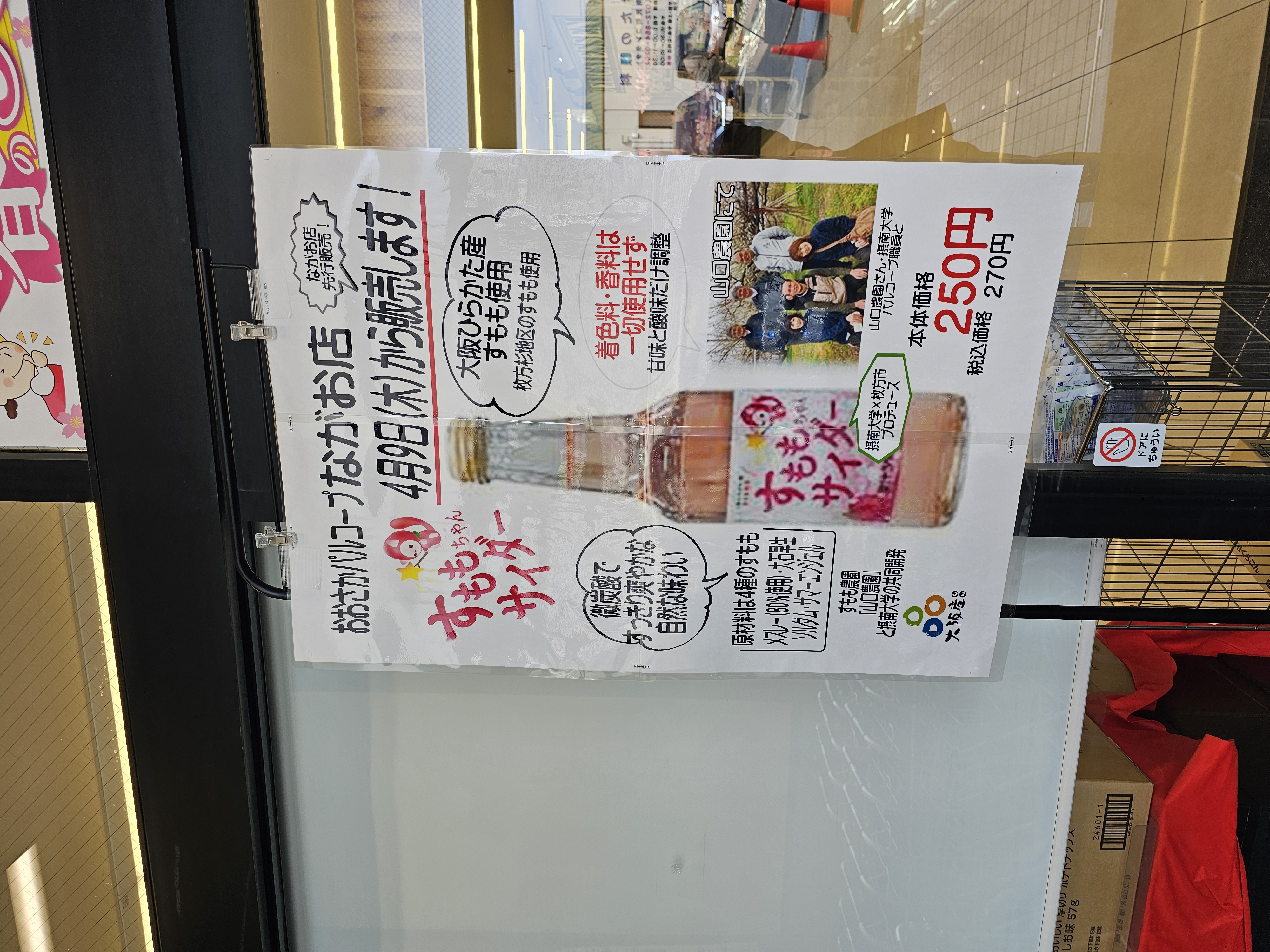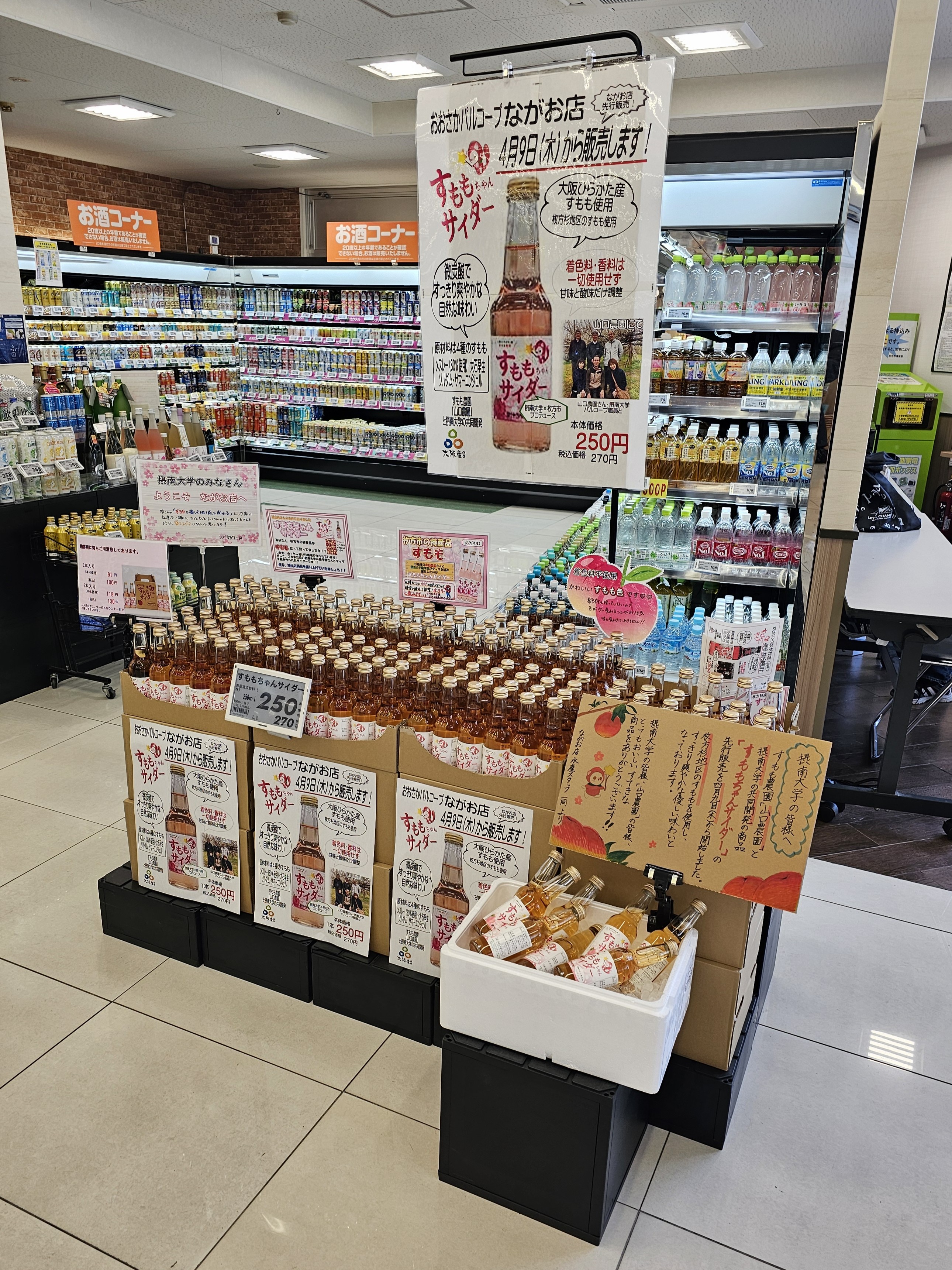 農学部が枚方市と共同開発した「すももちゃんサイダー」を、農学部がある枚方市内に店舗を構える「生活協同組合おおさかパルコープ ながお店」で販売しています。