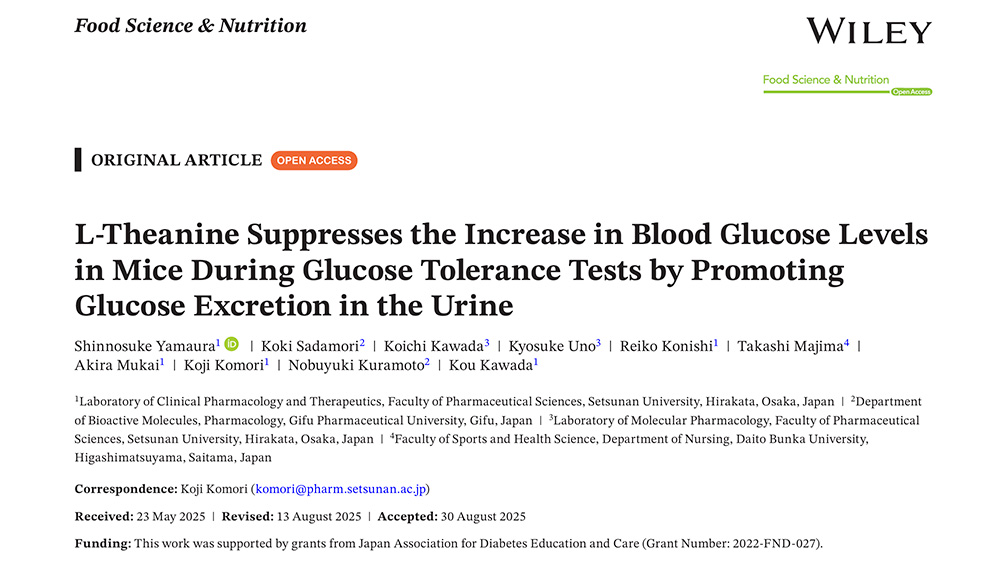 - 2025.10.31PAPER臨床薬理学研究室 山浦 慎之介 大学院生、小森 浩二 准教授らの原著論文が、Food Science & Nutrition誌に掲載されました。