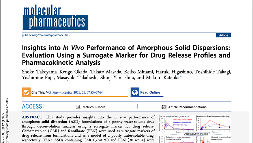 - 2025.12.02PAPER薬剤学研究室 片岡 誠 教授らの原著論文が、Molecular Pharmaceutics誌に掲載されました。
