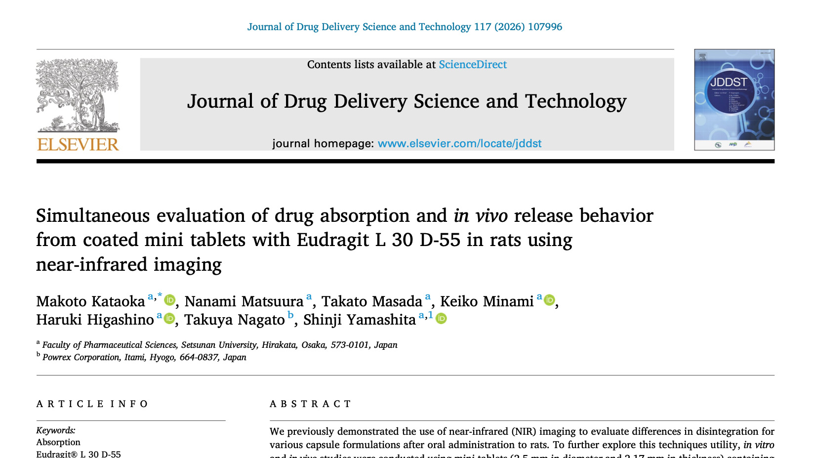 - 2026.01.13PAPER薬剤学研究室 片岡 誠 教授らの原著論文が、Journal of Drug Delivery Science and Technology誌に掲載されました。