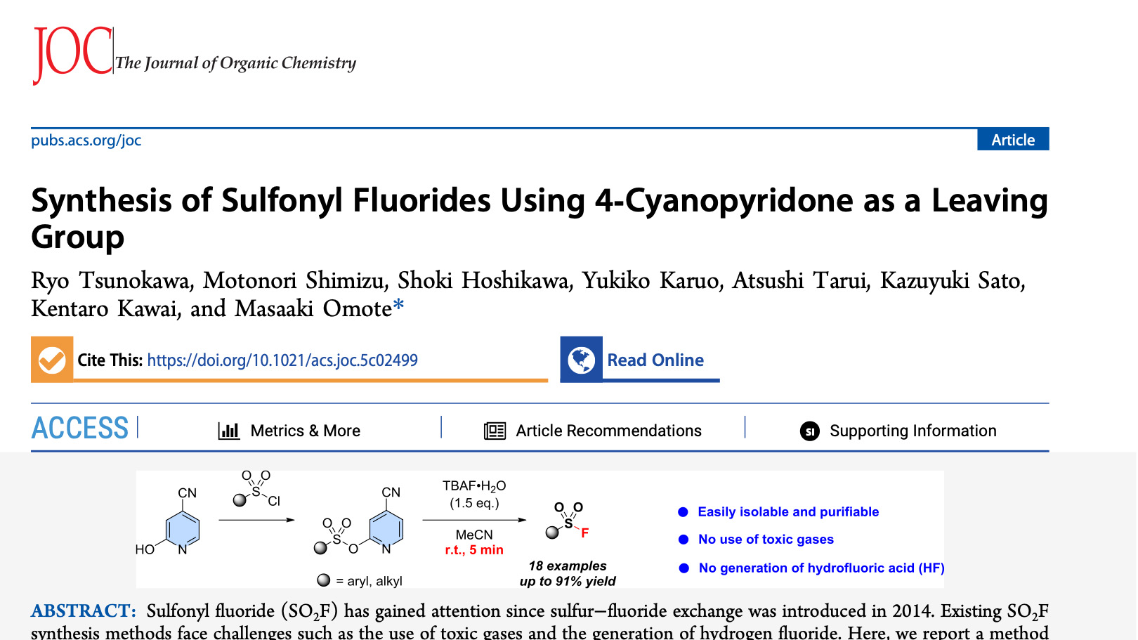 - 2026.01.13PAPER薬化学研究室 角川 遼 大学院生、表 雅章 教授らの原著論文が、The Journal of Organic Chemistry誌に掲載されました。