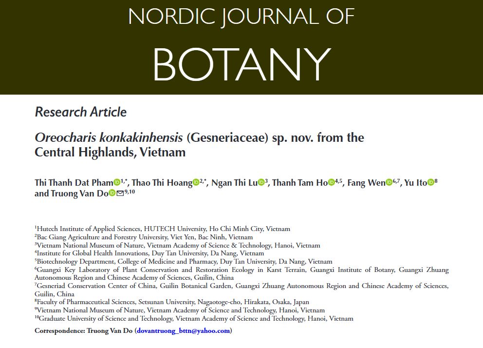 - 2026.02.12Paper Pham, T.T.D., Hoang, T.T., Lu, N.T., Ho, T.T., Wen, F., Ito, Y., Do, T.V. (2026) Oreocharis konkakinhensis (Gesneriaceae) sp. nov. from the Central Highlands, Vietnam. Noridc Journal of Botany e05071.