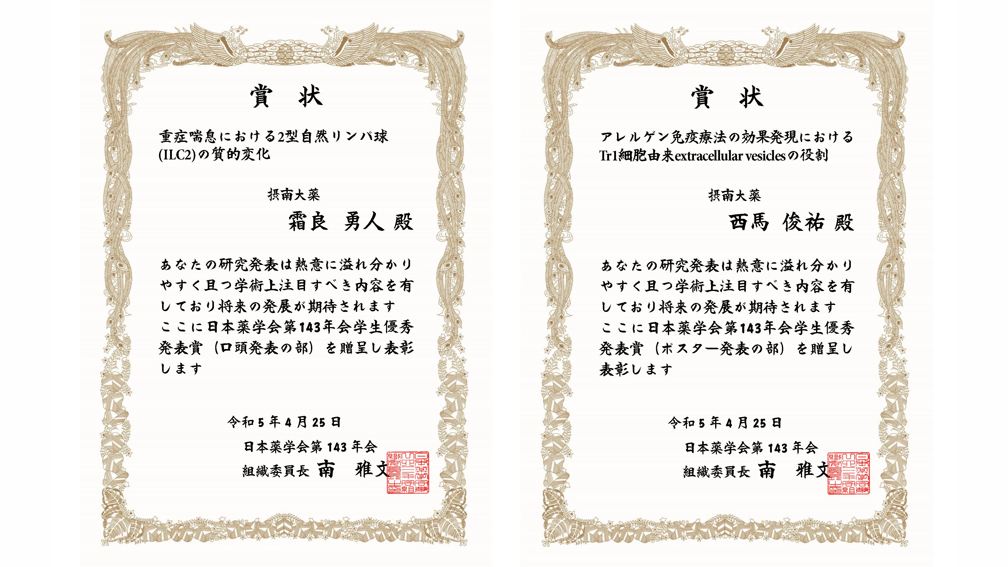 次世代を担う若手のための創薬・医療薬理シンポジウム2023において優秀発表賞を受賞